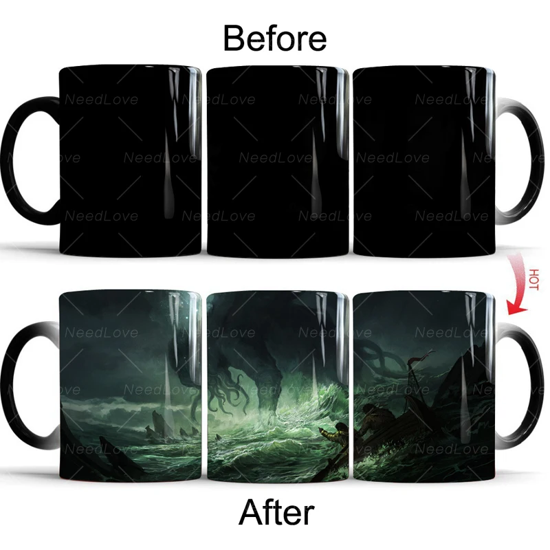 H.P. Кружка Lovecraft Cthulhu, керамическая чайная чашка, меняющая цвет от горячего тепла, лучший ужасный подарок для вашего друга