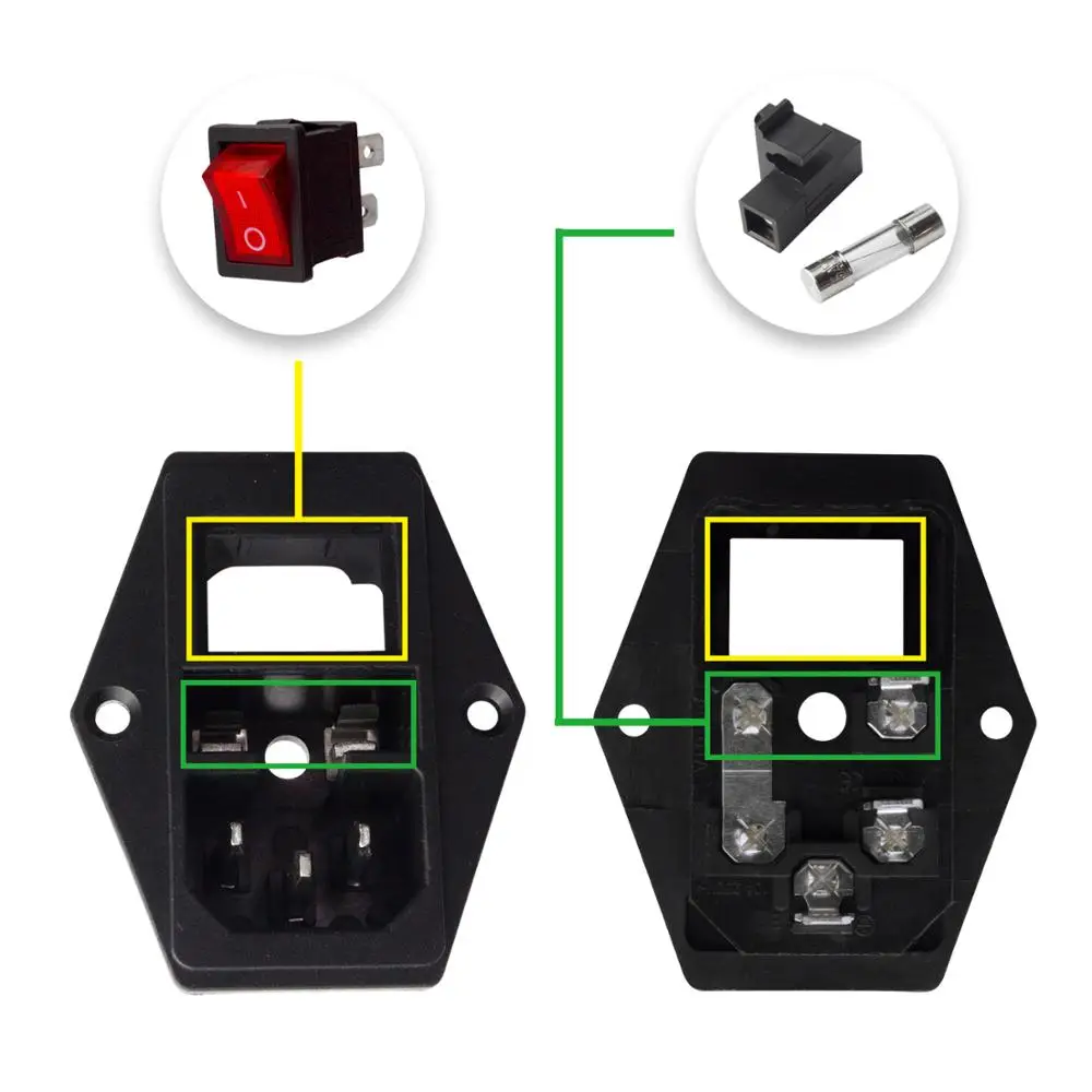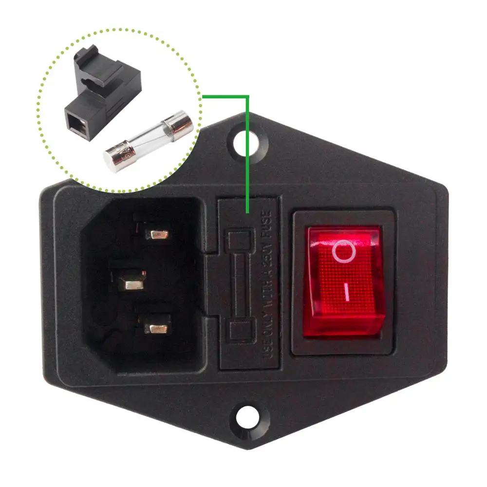 15A 250V рокер Мощность переключатель переменного тока Мощность выход 2000 В переменного тока/мин с красным тройной кулисный выключатель с плавким предохранителем модуль Разъем для 3D-принтеры Запчасти