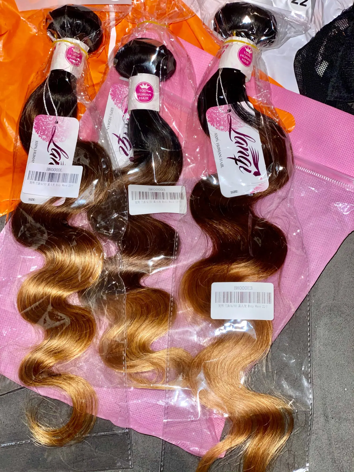 Набор человеческих волос T1B430 блонд Омбре, пряди волнистых волос для наращивания, не Реми, пряди уанские бразильские пучки волос для плетения