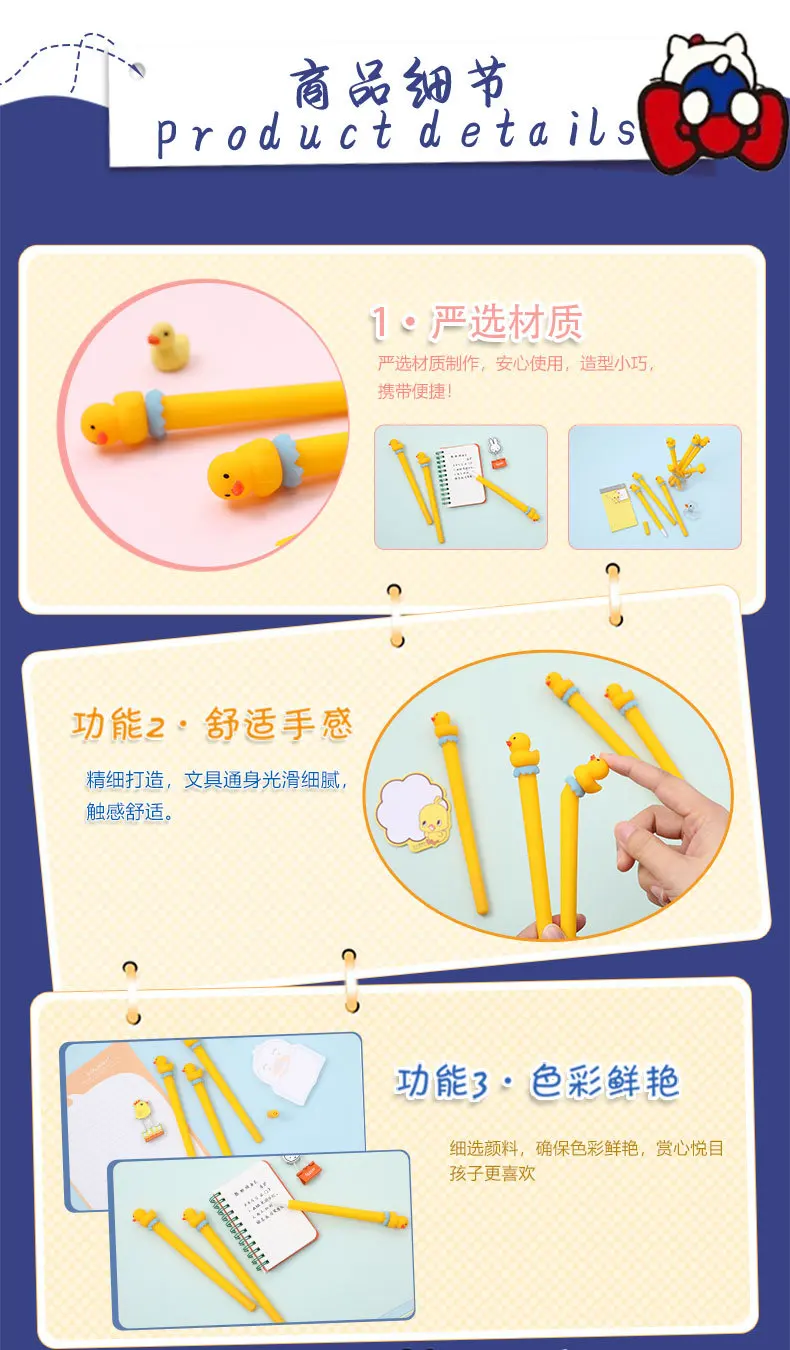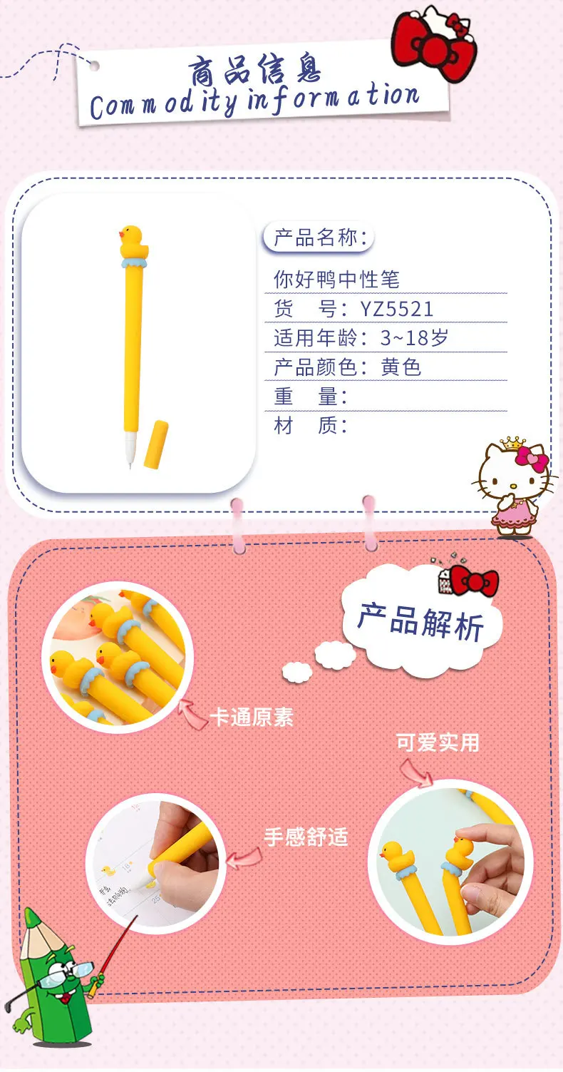 1 шт., мультяшная нейтральная ручка, 0,5 мм, милая желтая утка, шко...