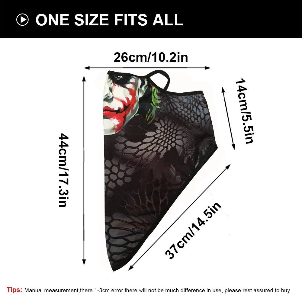 Велосипедная бандана для ушей с объемным черепом Особенности: Это супер мягкий и дышащий материал, который идеально подходит для всех возрастов и случаев, кемпинга, активного отдыха в помещении и на открытом воздухе, пеших прогулок, езды на велосипеде, езды на велосипеде, охоты, скалолазания, бега, велоспорта, езды на лодках, катание на коньках, катание на лыжах, серфинг, рыбалка. Цвет: как на картинке Размер: (один размер) 44 см * 26 см Из-за ручного измерения возможна погрешность в 1-2 см. Посылка включает в себя: 1 пару шарфов для лица Размер: около 44 см X Длина 26 см (+/- 1 см) Функция: солнцезащитный, антибактериальный Быстросохнущий, ветрозащитный, контроль песка, защита от пыли Материалы: 100% высокая проницаемость микрофибра