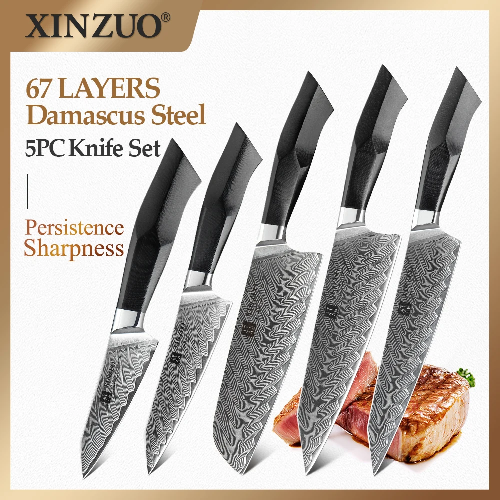 Набор кухонных ножей XINZUO, 5 шт., из кованой дамасской стали, с ручкой G10