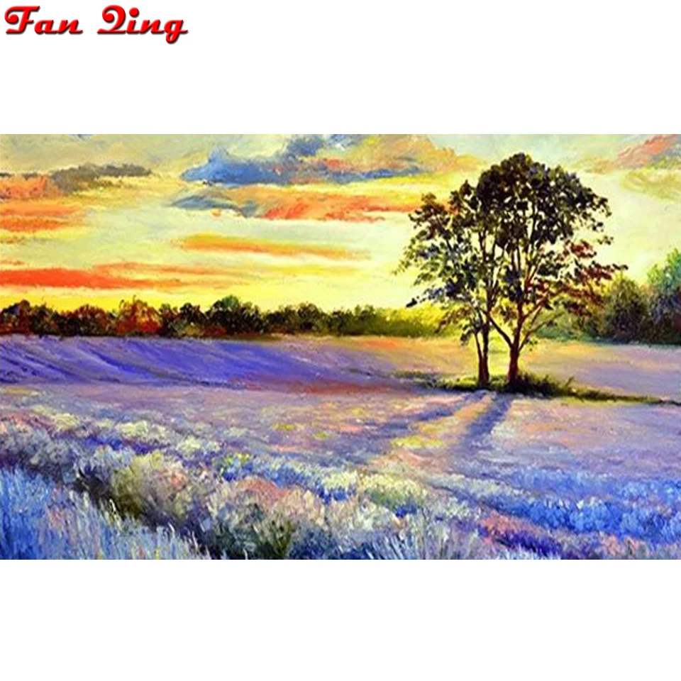 Закат пейзаж 5D Сделай Сам полный квадрат Алмазная Картина Фиолетовый Лавандовый поле Вышивка крестом Стразы Мозаика Декор