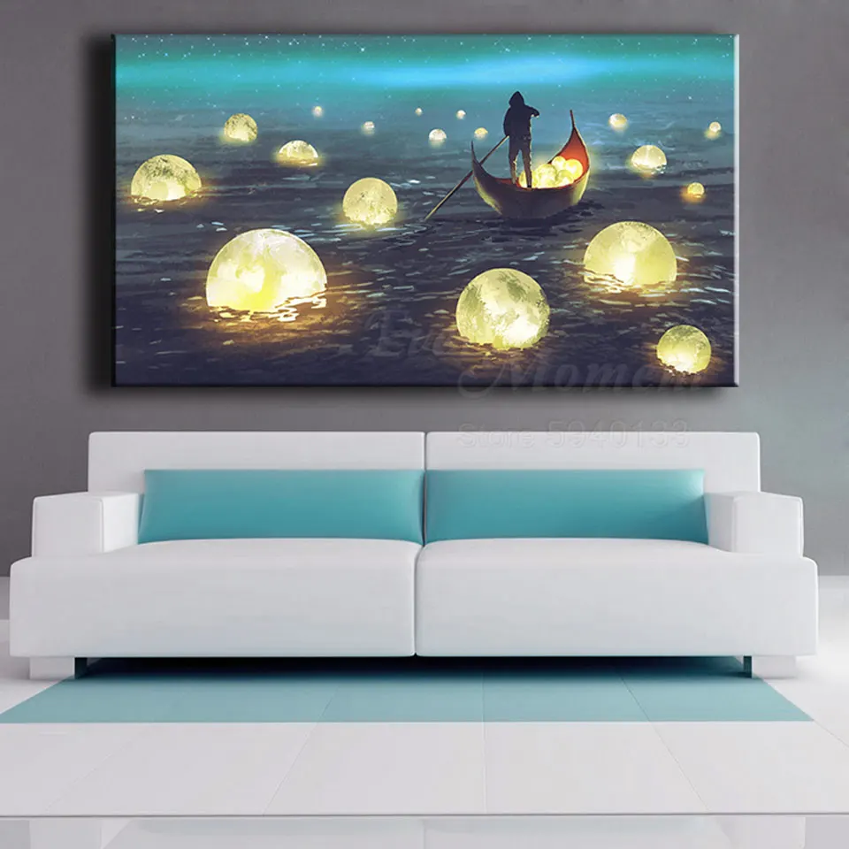 Алмазная живопись с фантазийным пейзажем, яркая луна, океан, полноразмерная полимерная мозаика, вышивка, ручная работа, декор 4Y209