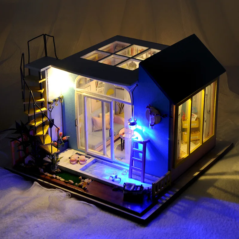 Новый деревянный дом сделай сам, кукольный домик ручной работы, модель, теплая и модная вилла с плавательным бассейном, креативный подарок на любовь