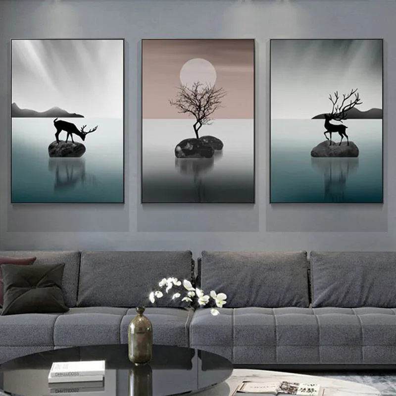 Абстрактный современный постер с животными, художественное украшение, домашний холст, живопись, Постер и печать, Настенная картина с оленями для гостиной, спальни