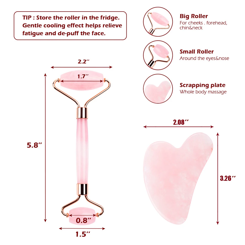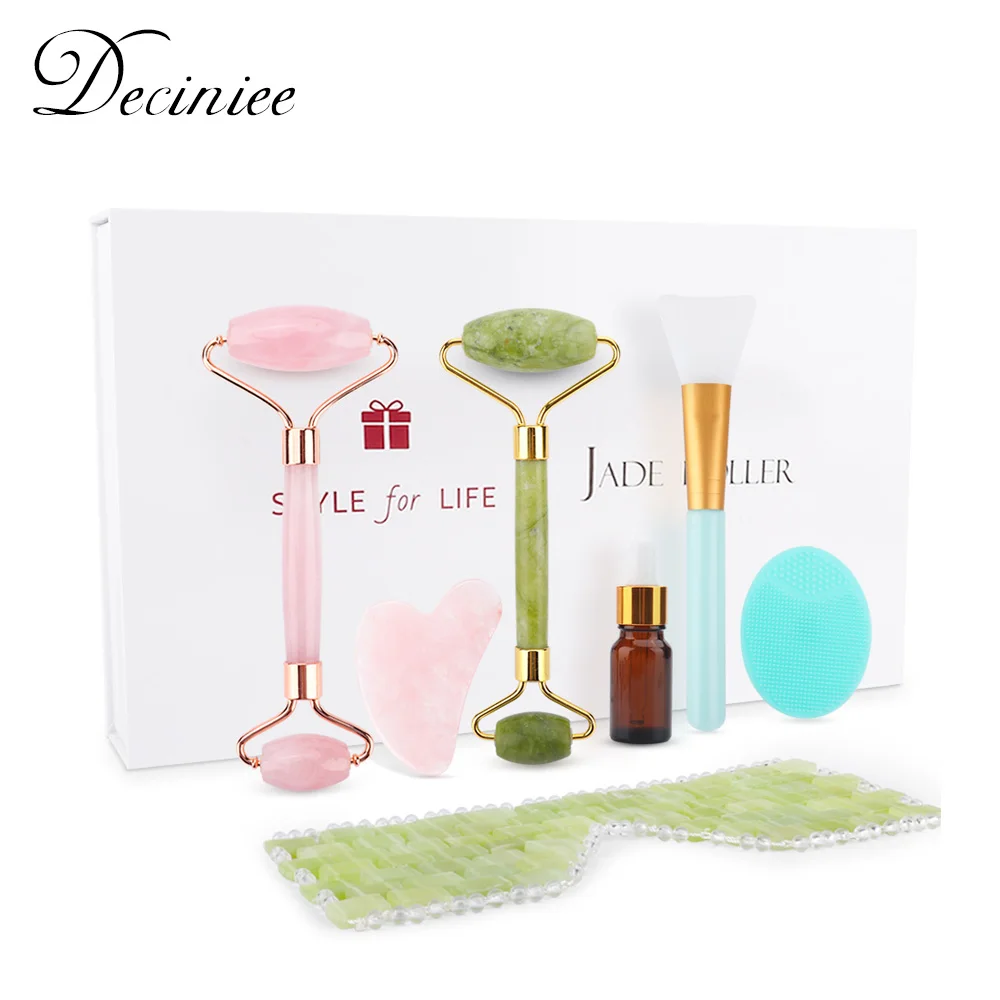 7 шт.компл. розовый нефритовый ролик Gua Sha щетка для лица натуральный кварцевый скребок Нефритовый камень массажер для глаз инструменты для массажа лица для шеи тела