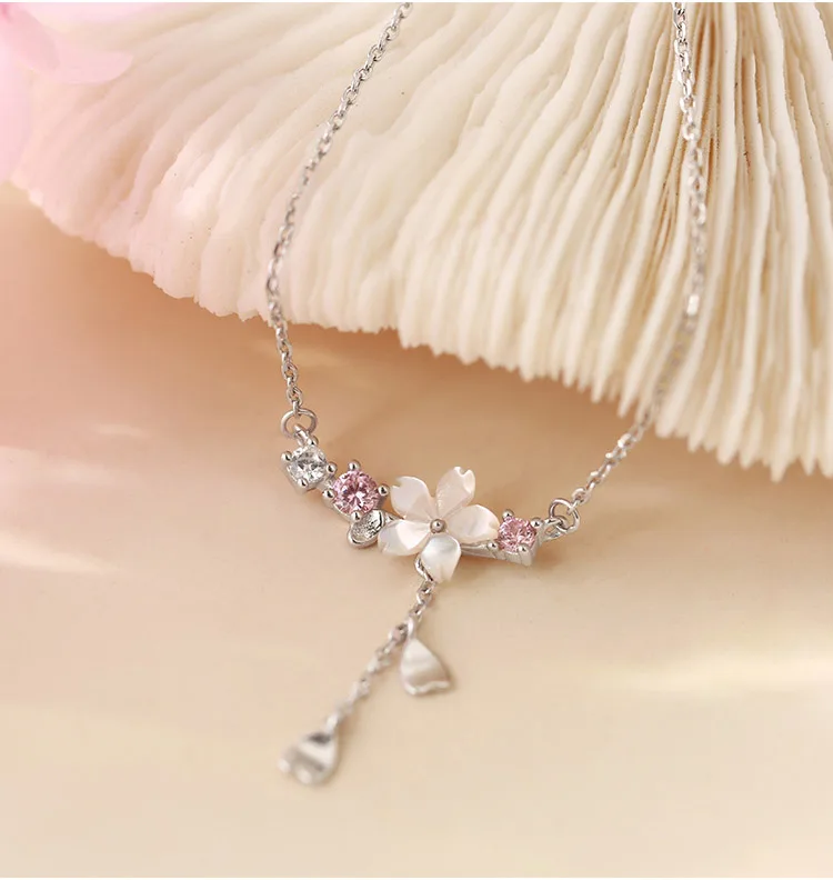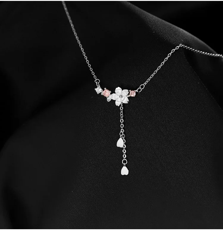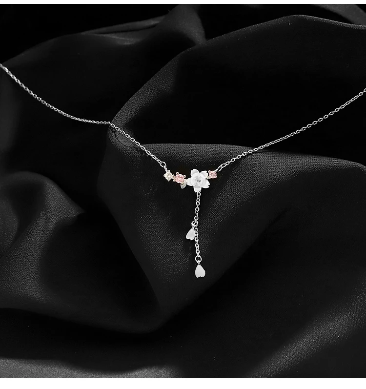 Женское изящное ювелирное изделие из стерлингового серебра 925 пробы, ожерелье с розовым цветком Вишни из циркония, цепочка до ключиц для девушки