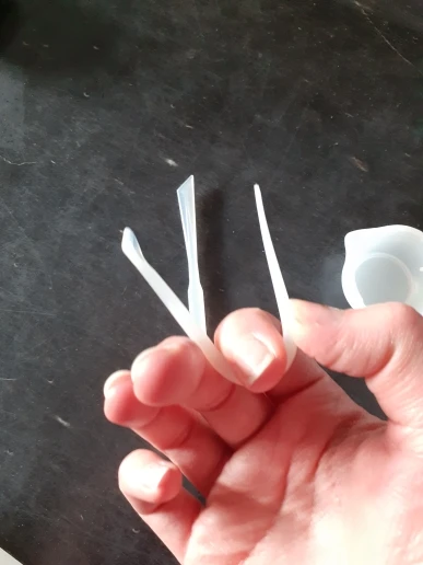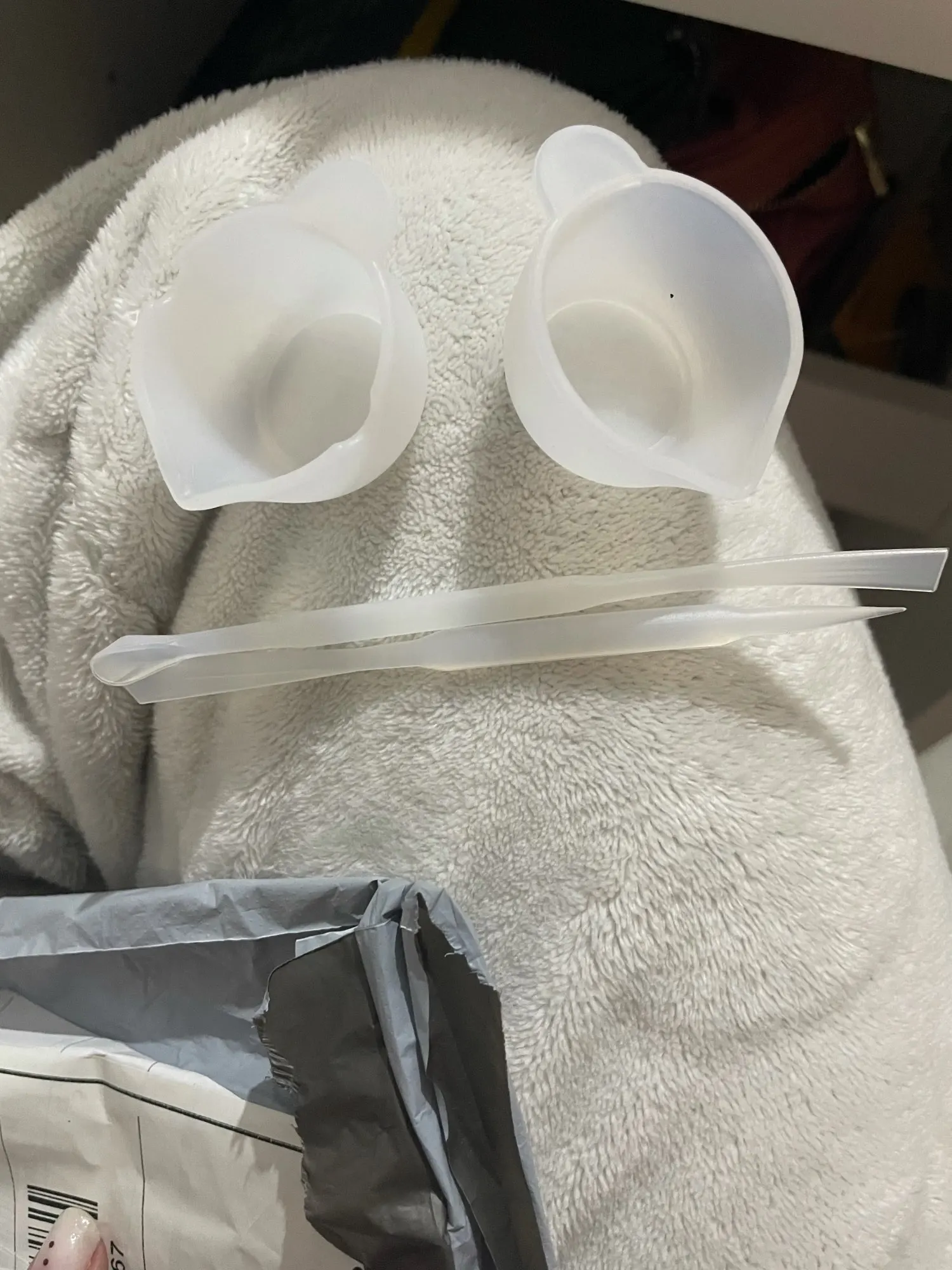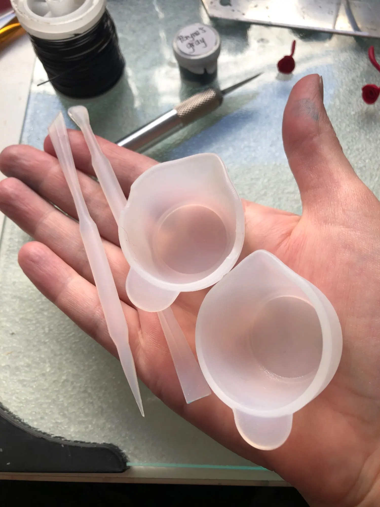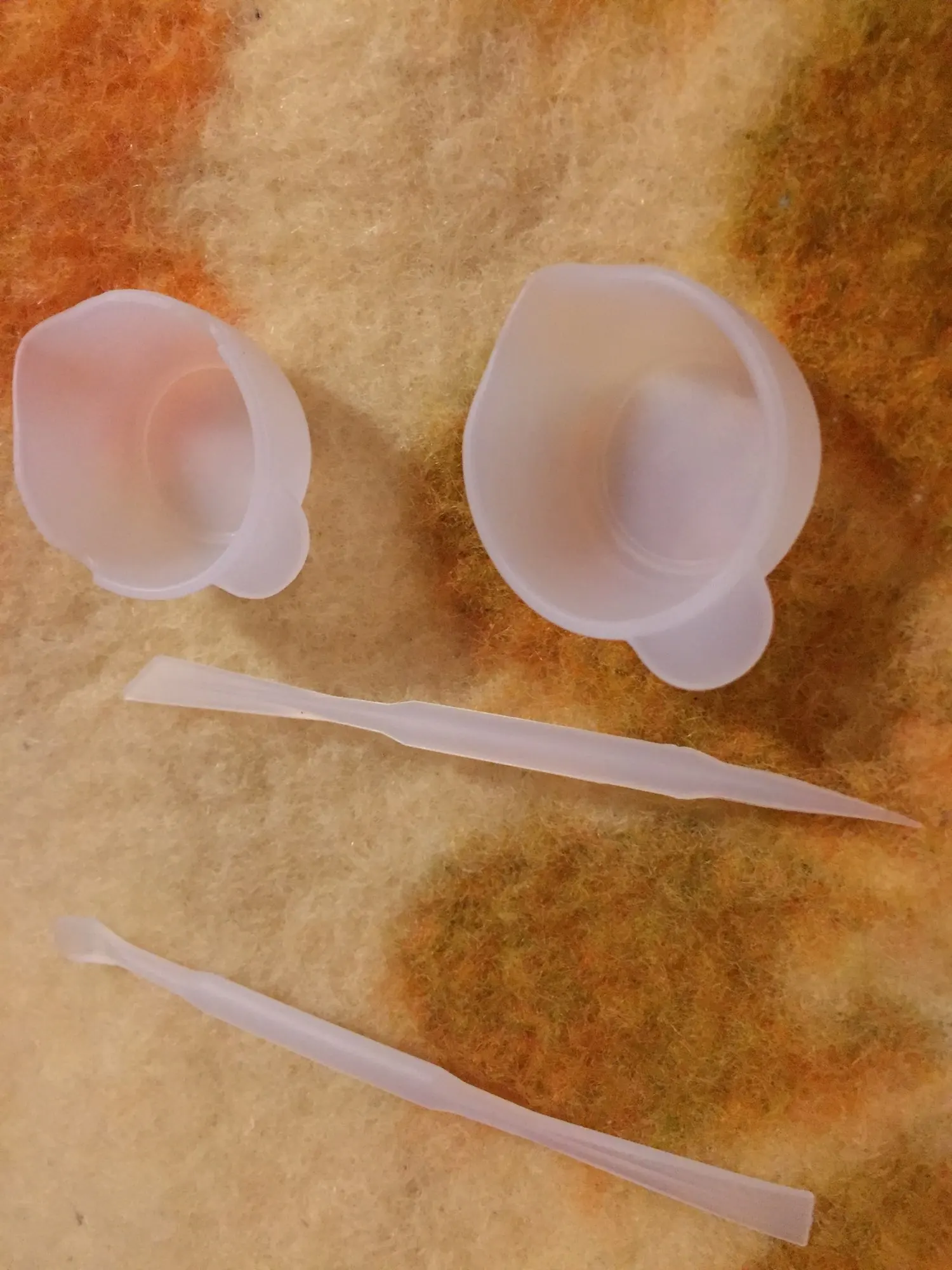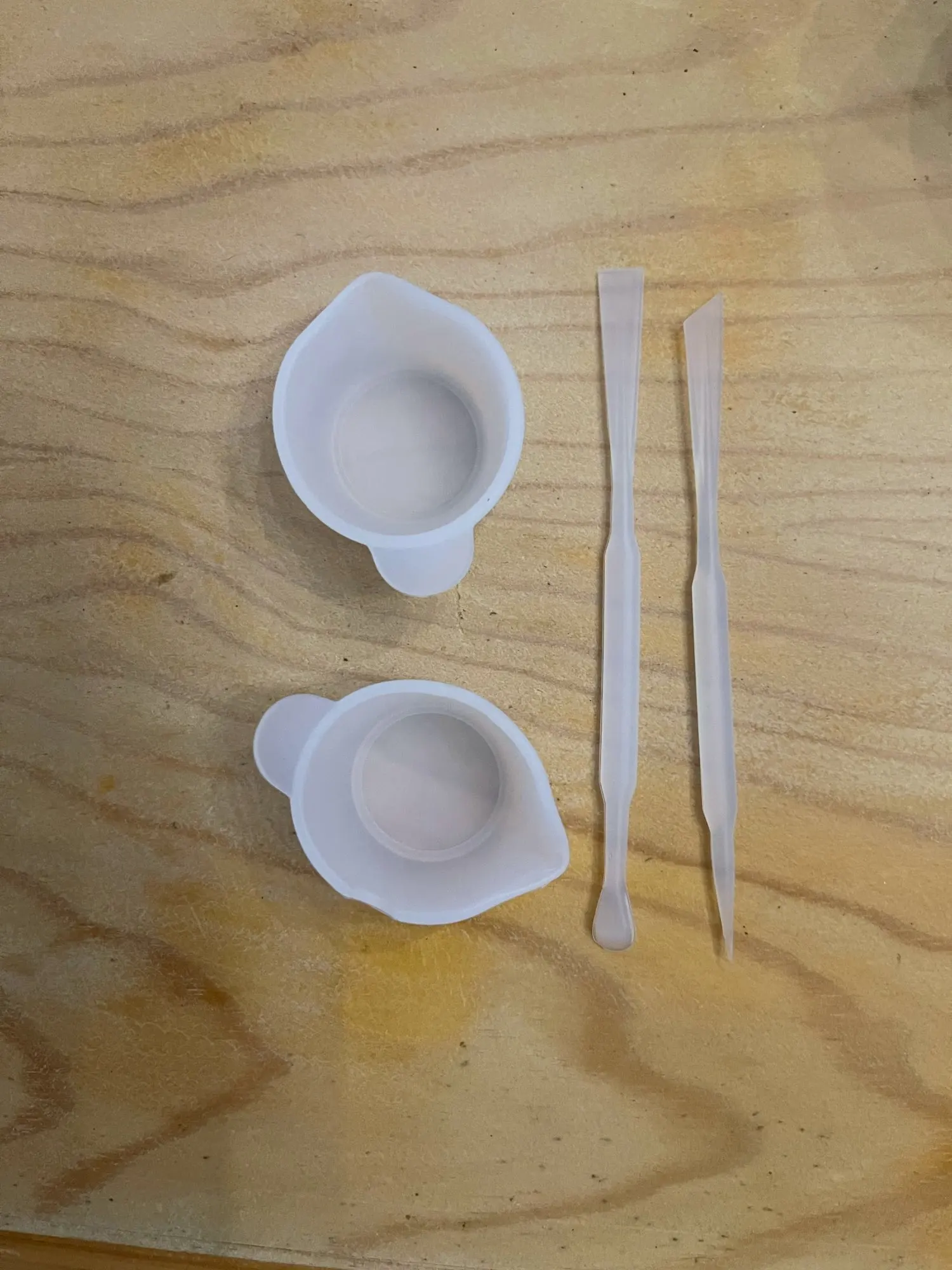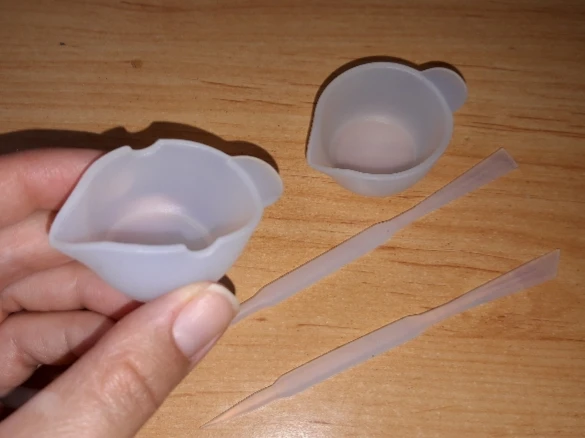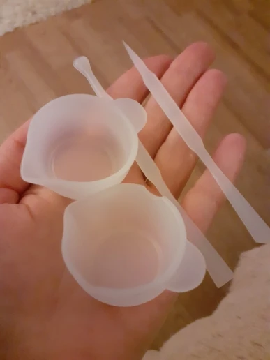 Pojemniczki są malutkie, fajne do mieszania małych ilości żywicy. Bardzo łatwo jest je później wyczyścić. Patyczki do mieszania są dosyć giętkie co może trochę przeszkadzać, ale myślę że wystarczy się przyzwyczaić, jednak polecam wszystkim przynajmniej same pojemniczki :)