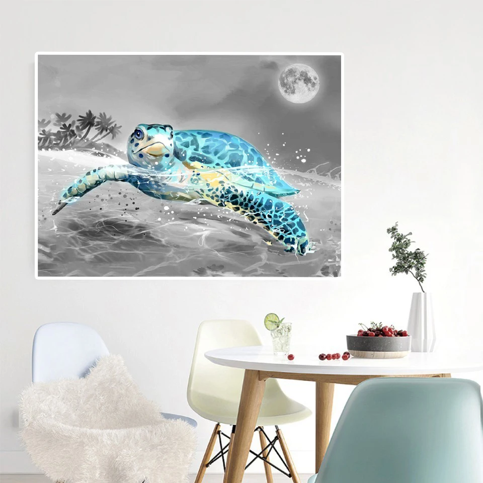 5d алмазная живопись сделай сам, черное, белое искусство, морская и синяя черепаха, 3d полноразмерная круглая Алмазная вышивка крестиком, мозаика, домашний декор