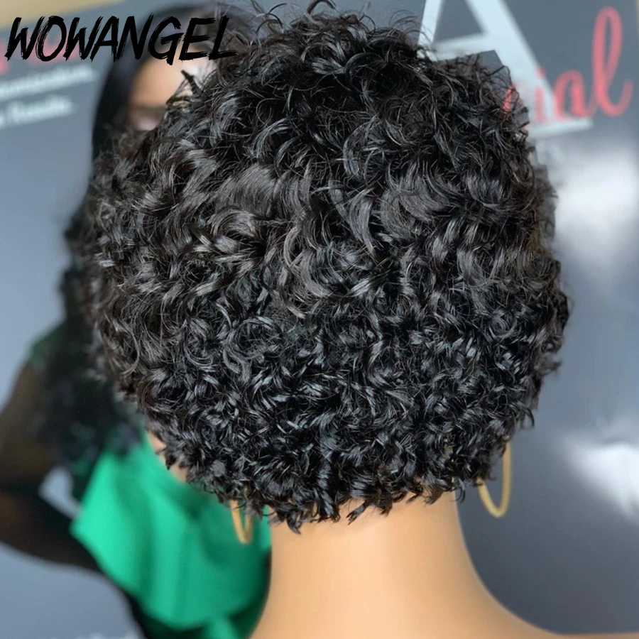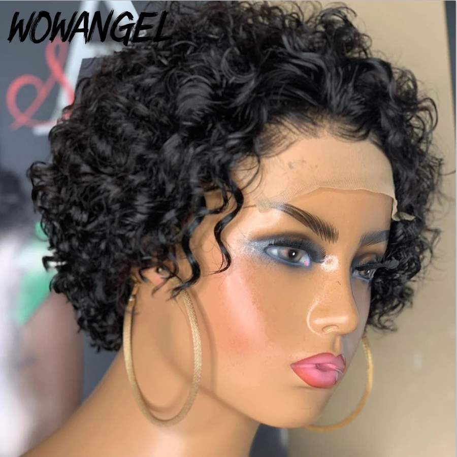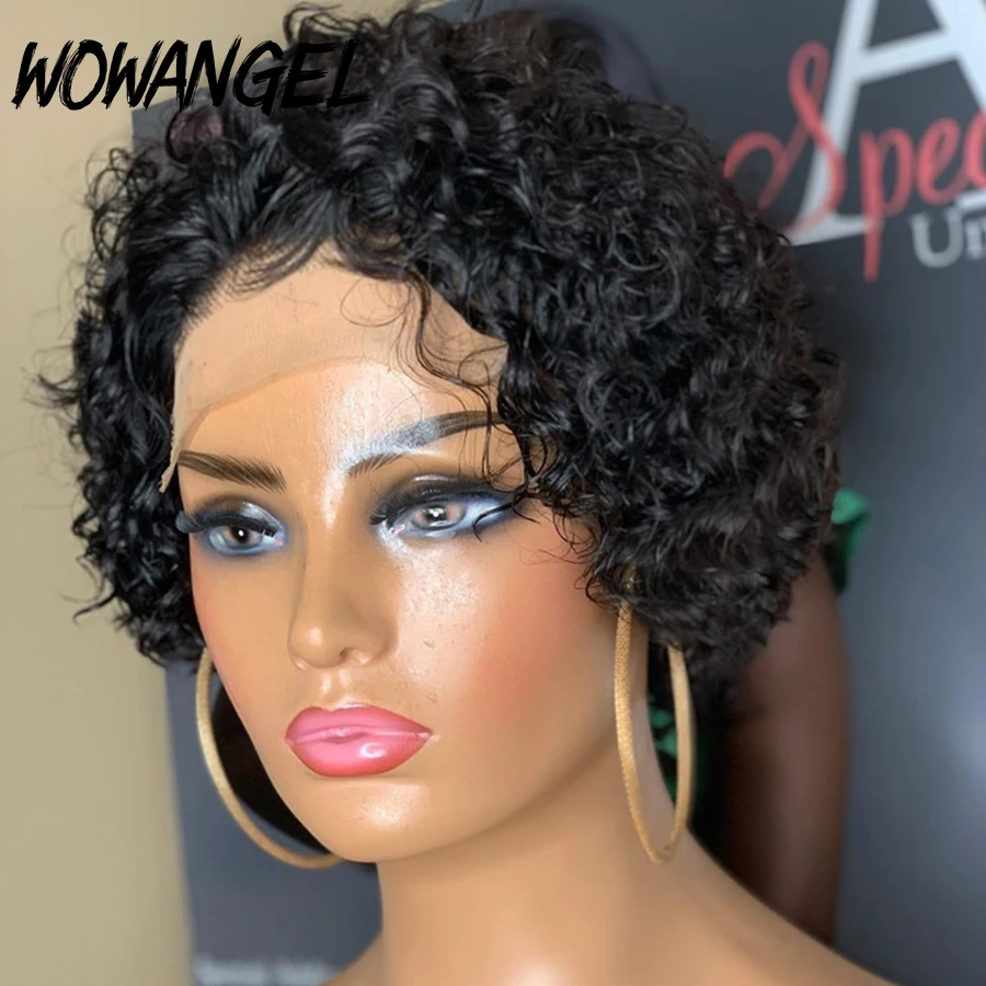 Кружевные парики Pixie Cut, прямые парики с вырезами, Короткие парики с кружевом спереди, парики из человеческих волос, водно-кудрявые кружевные накладки без клея