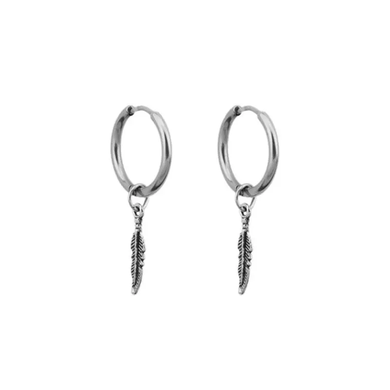 Серьги-кольца в стиле хип-хоп с листьями из титанового пера, корейские украшения