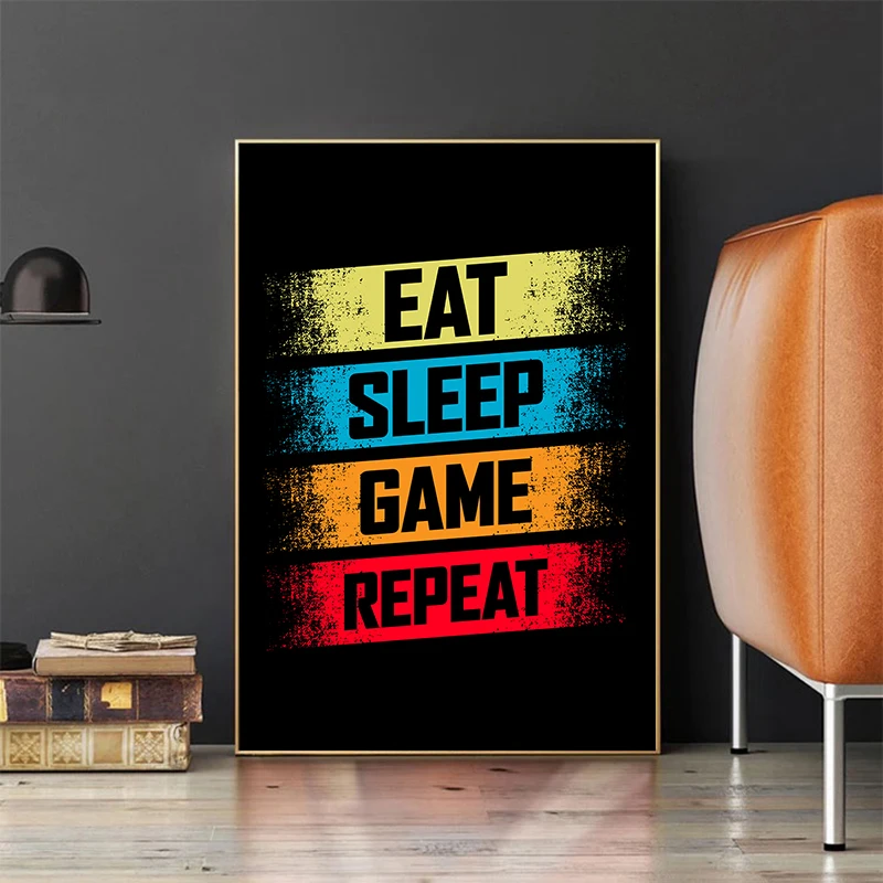Настенный постер для игр Eat Sleep, художественный постер на холсте для игроков, декоративная картина для комнаты мальчиков, игровой комнаты