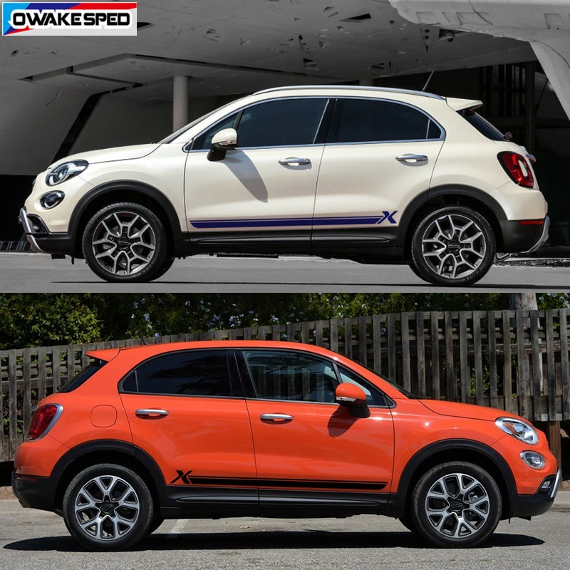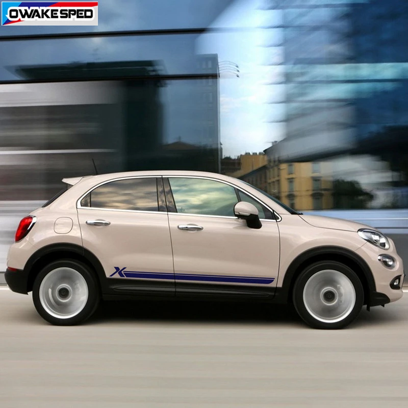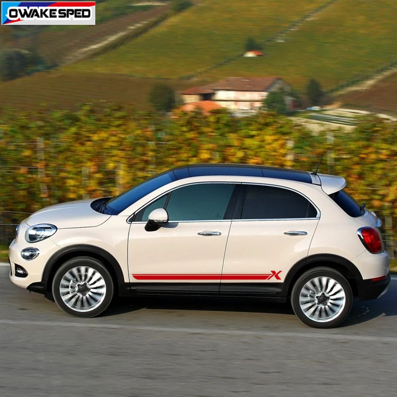 Для Fiat-500X, спортивные полосы, автомобильная дверь, боковая юбка, наклейка, авто Декор, Виниловая наклейка, гоночный стиль, внешние аксессуары
