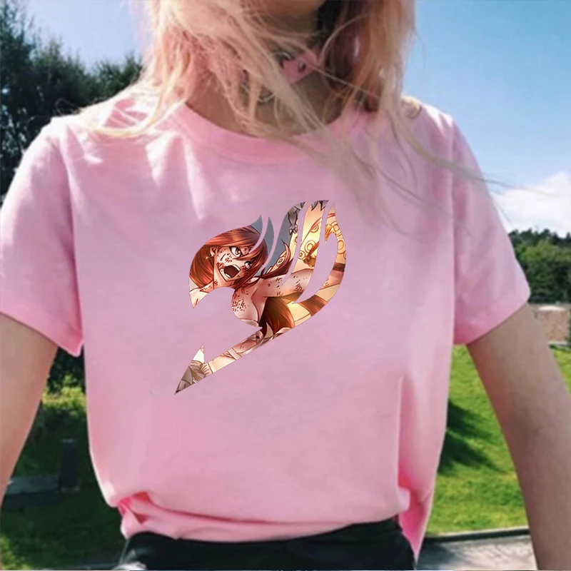 Футболка с хвостом феи, женская и мужская одежда, топы, женская графическая футболка, розовая футболка, Femme Camisetas Mujer, винтажная аниме-рубашка