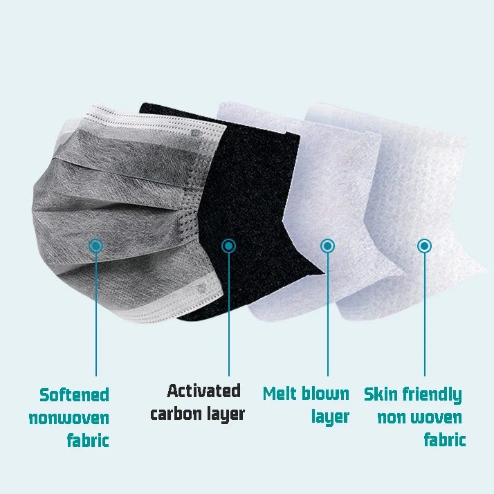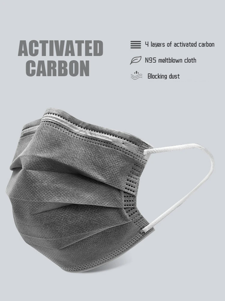Одноразовая 4-слойная маска для взрослых с активированным углем, ре...