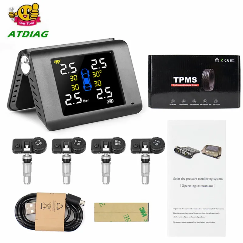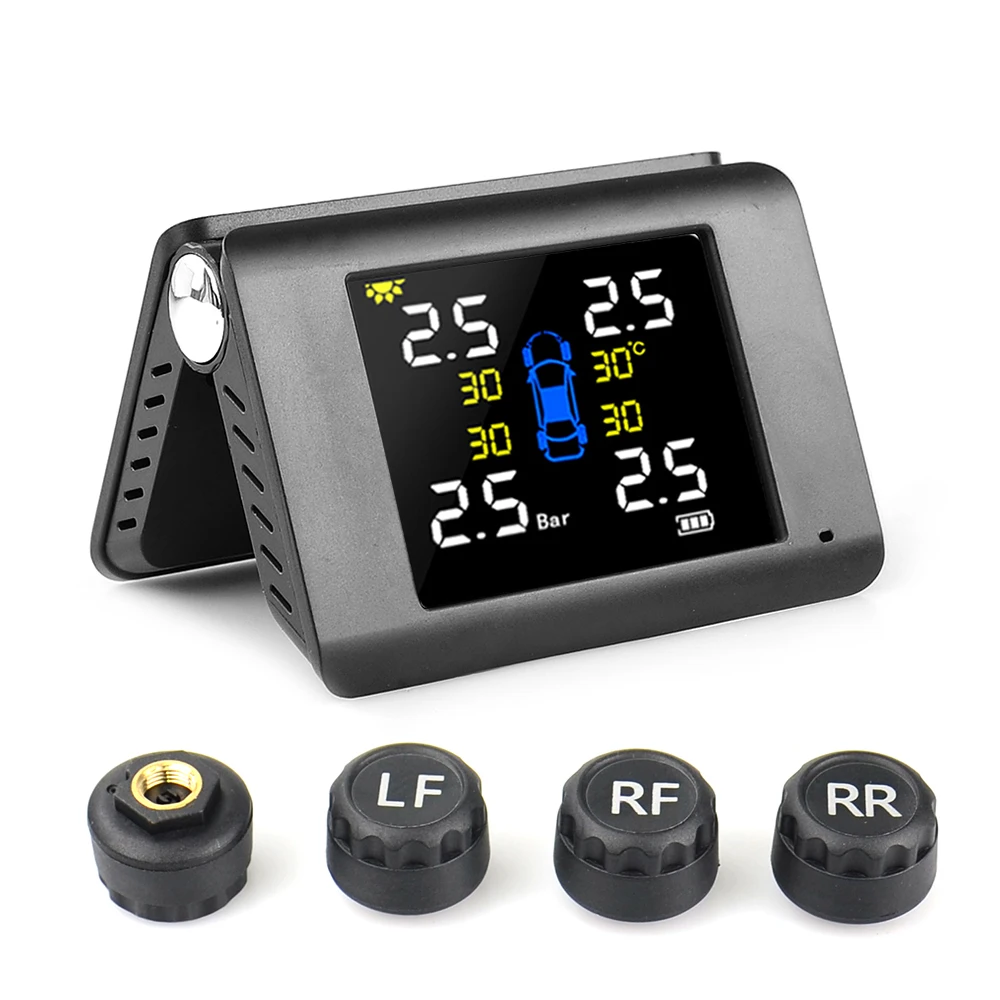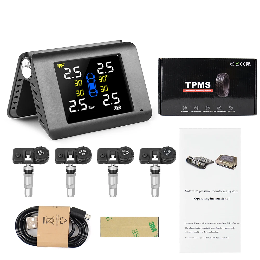 Система контроля давления в шинах автомобиля, с солнечной батареей, USB, TPMS, с ЖК-дисплеем, 4 внешнихвнутренних датчика для системы контроля температуры в шинах для внедорожников