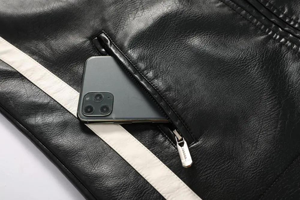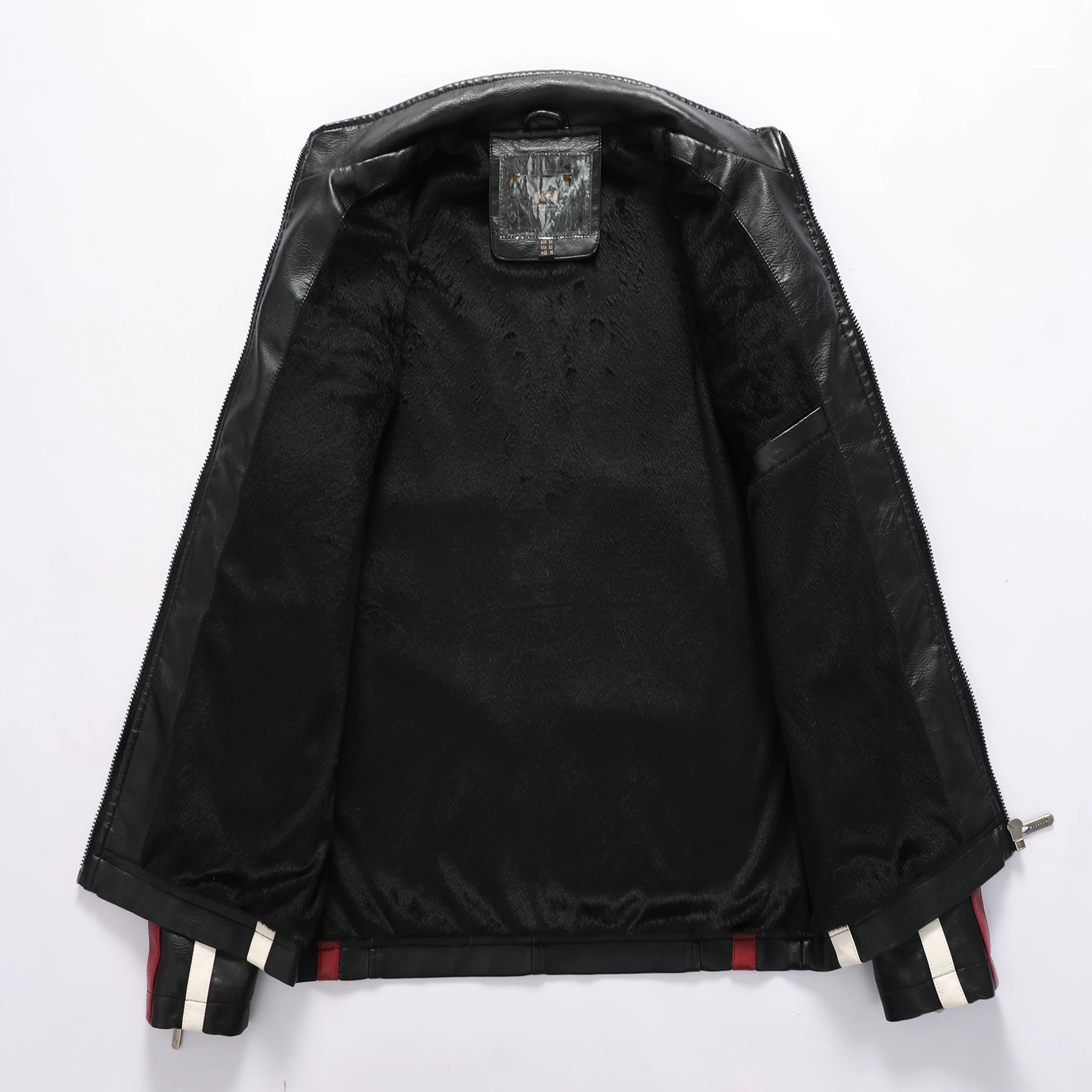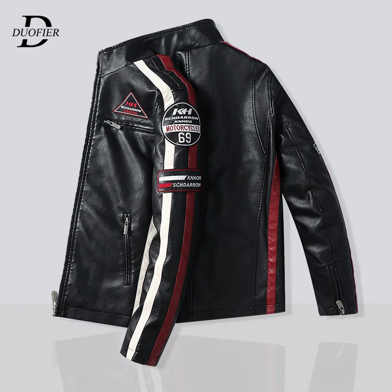 Мужская мотоциклетная куртка, осенне-зимняя мужская новая куртка из искусственной кожи, повседневная байкерская куртка-бомбер с вышивкой, флисовое пальто на молнии, 2022