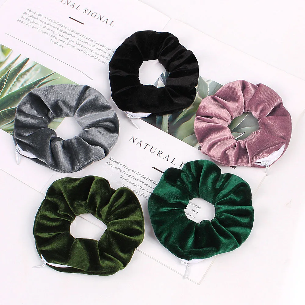 Новинка 2020, модные женские креативные бархатные резинки для волос в стиле ретро, качественные карманные резинки на молнии