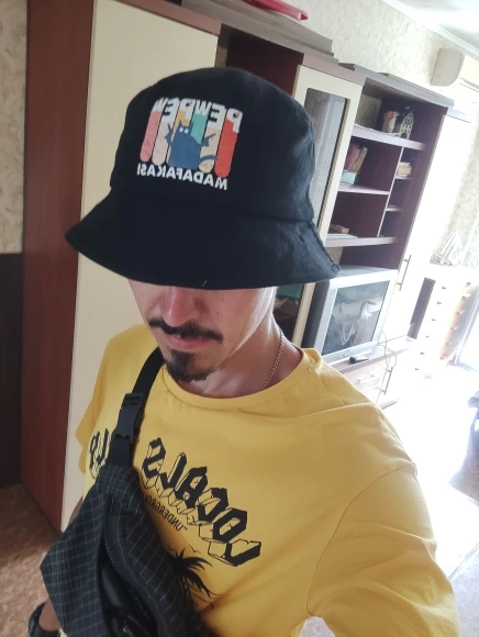 Продавец топовый!! Я очень доволен!!! Попросил эту же панаму на без нижней надписи. Мне все сделали.