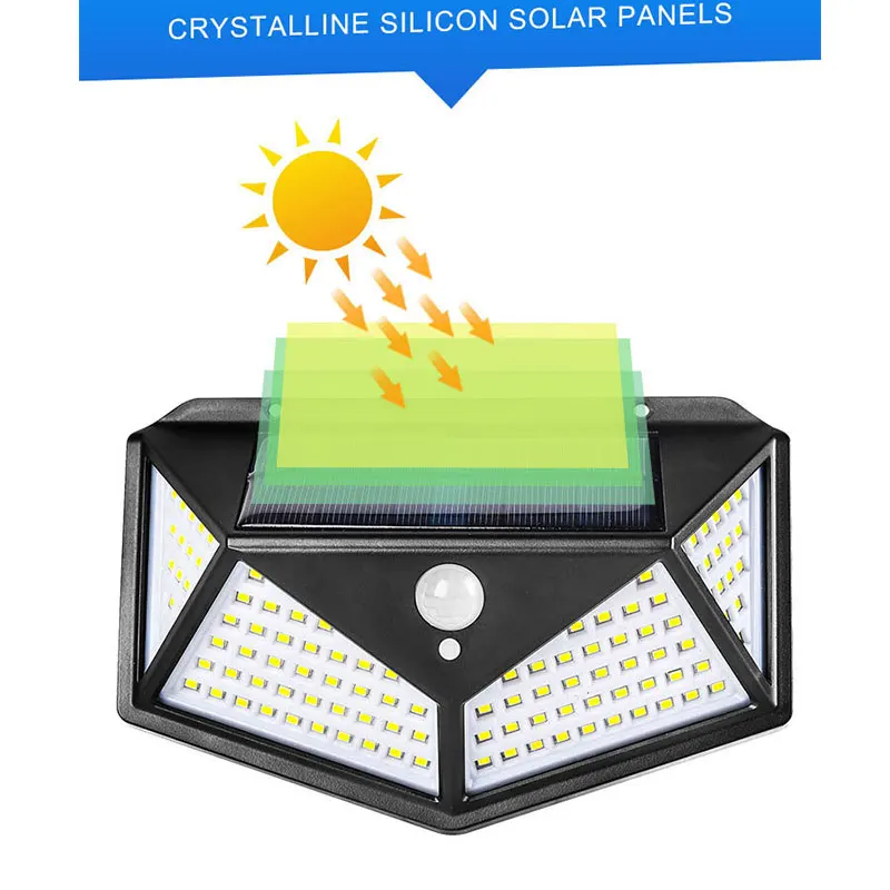 Уличная лампа на солнечной батарее с датчиком движения, 100 светоди...