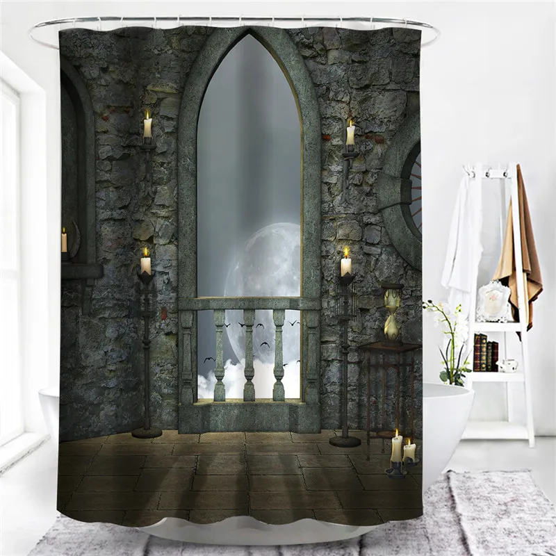 Декоративные занавески для гостиной, ванной комнаты, водонепроницаемые 3D занавески для душа из полиэстера, таинственный замок, украшение на Хэллоуин