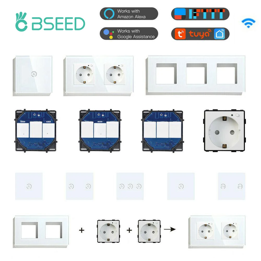 Настенные светильник ключатели BSEED с Wi-Fi, стеклянная панель, сенсорные выключатели белого цвета, розетки европейского стандарта