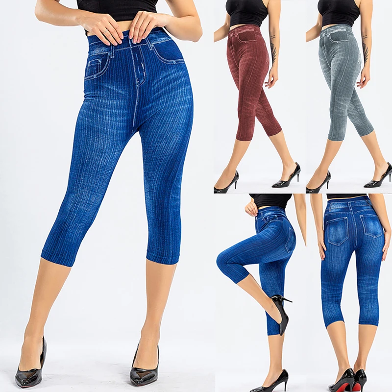 34 имитация джинсов, леггинсы для женщин с высокой талией, эластичные тонкие леггинсы, модные повседневные штаны, джеггинсы, Осенние Женские однотонные мягкие леггинсы