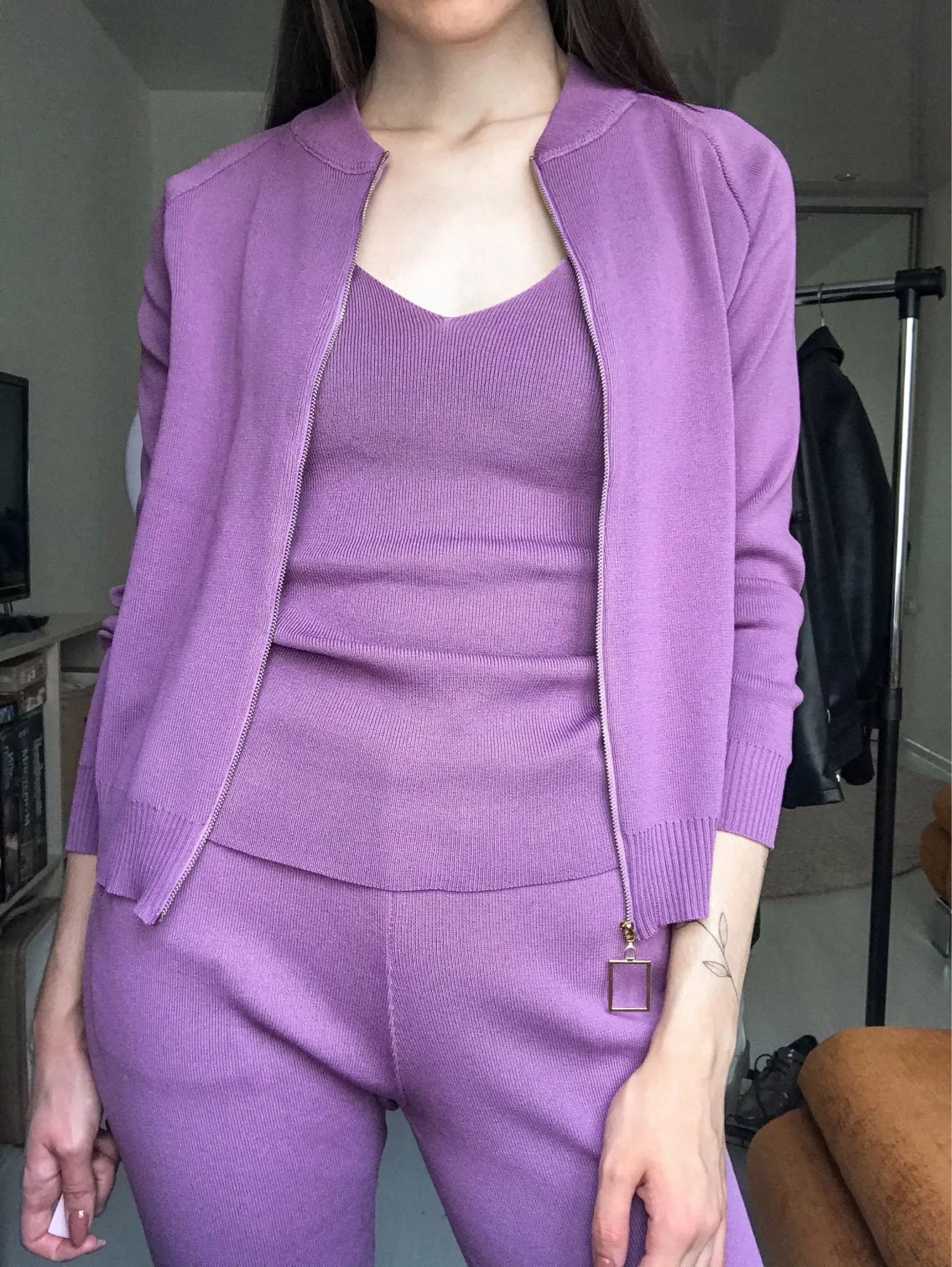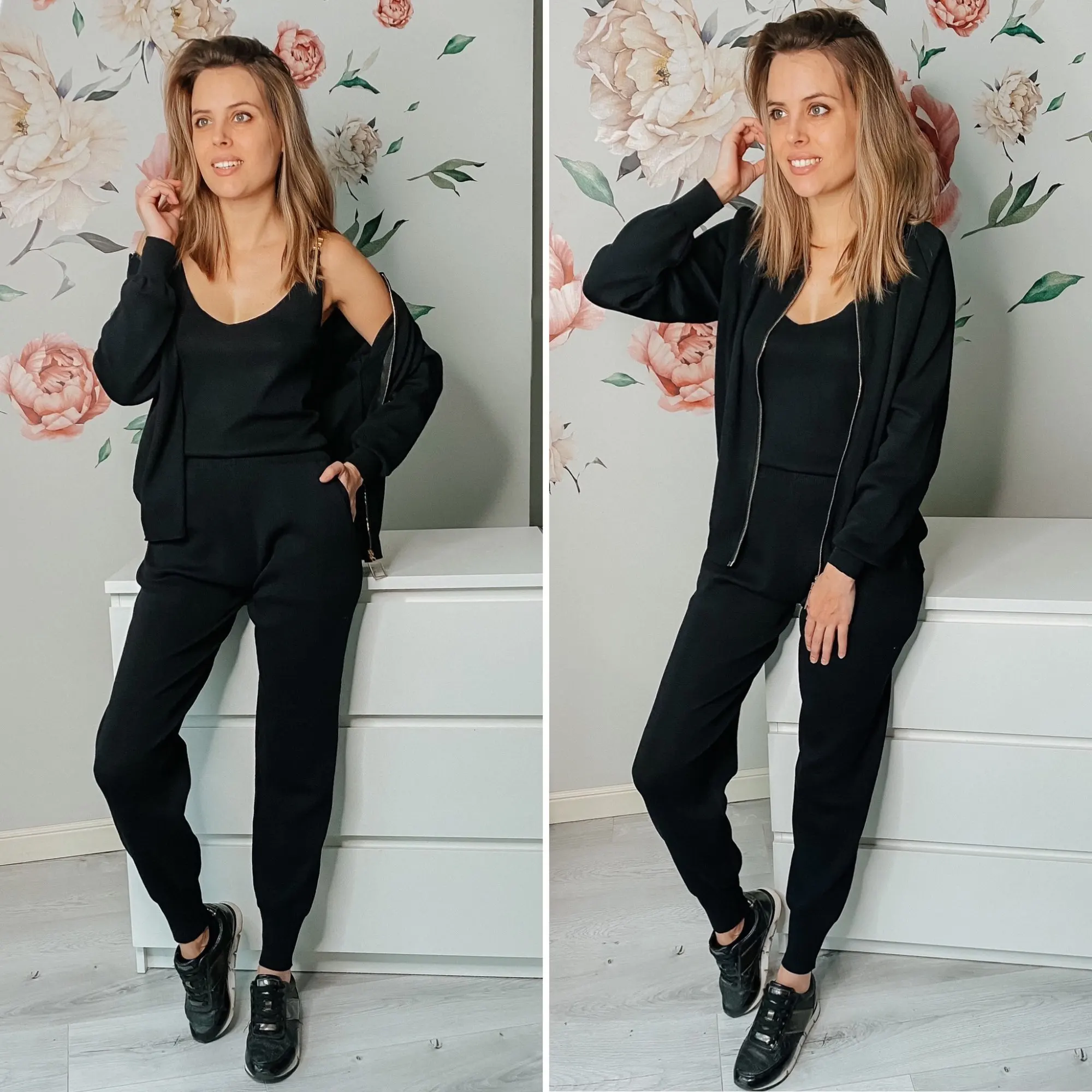 Женский трикотажный костюм, кофта на молнии с длинными рукавами, кардиган, майка и штаны, повседневный однотонный спортивный костюм, 2020