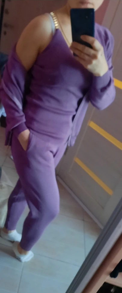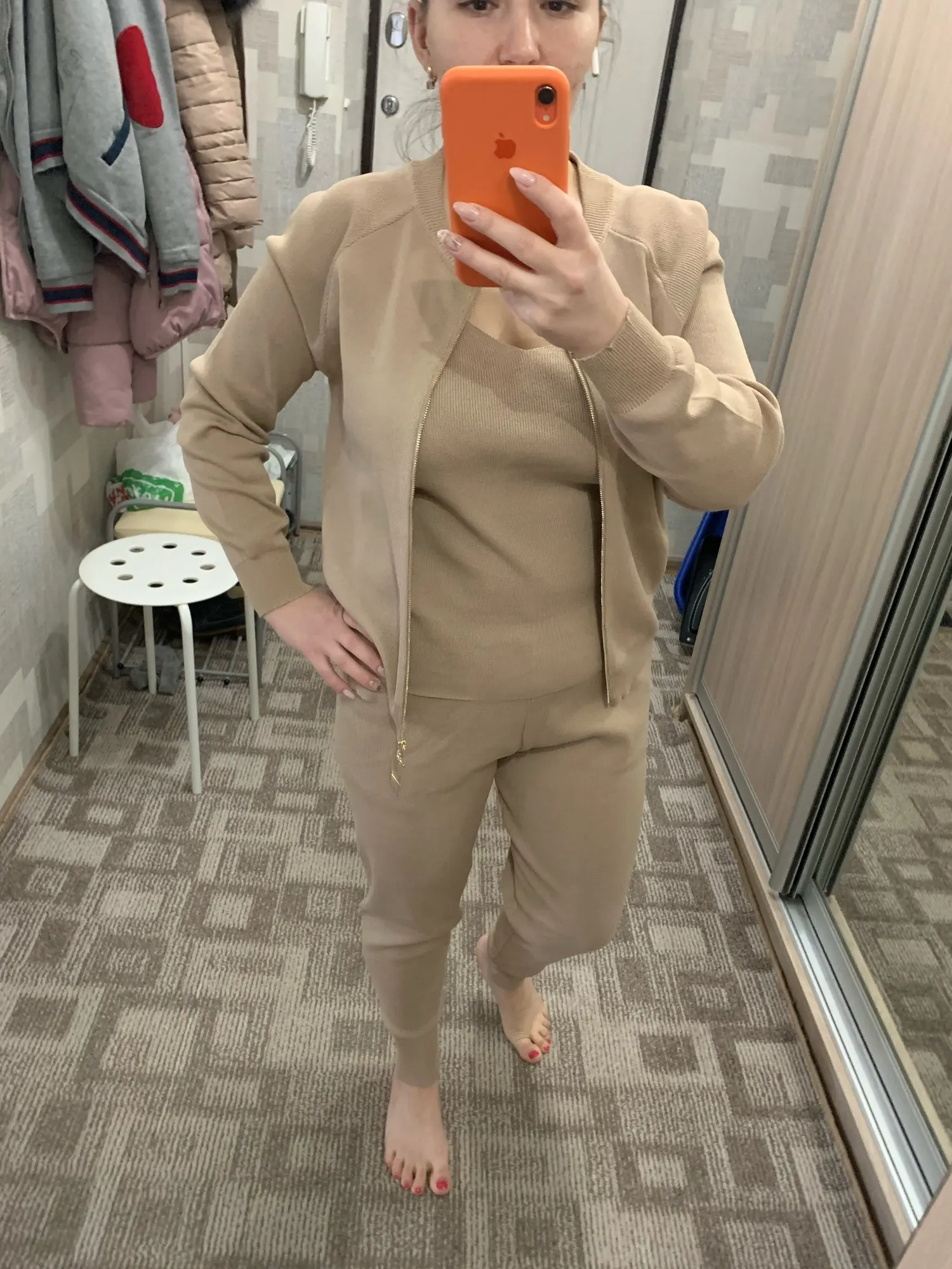 Ой очень понравился костюм, на мои не модельные ноги штаны конечно сильно в облипку и видны все недостатки, подумаю буду ли носить на улице, но вот топ и кофта очень классные, ну и в целом как костюм хорош) приятный к телу, думала даже будет тоньше. Ну и вапще, я щас похудею к весне и бомба будет)) за такую цену вообще классный)))