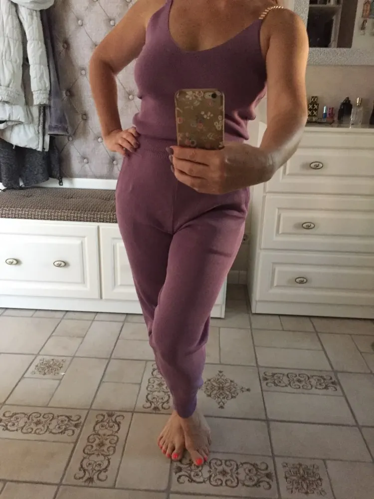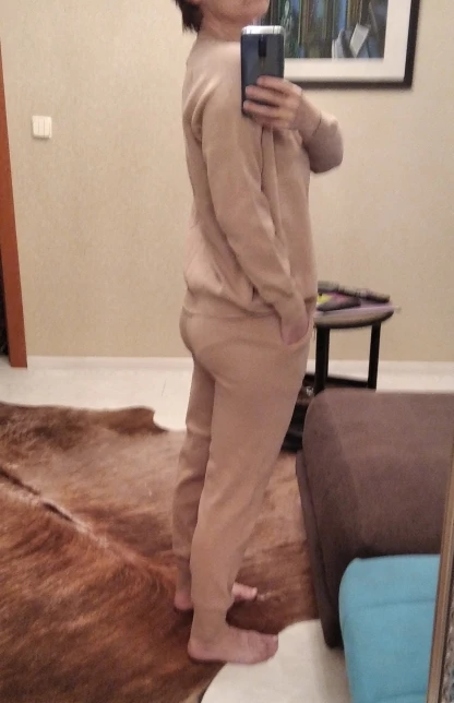 Ткань действительно приятная. Я лично хотел бы иметь его немного больше. Брюки немного коротковаты на 175 см, но все в порядке. Я рекомендую комплект для худых девочек. Следуйте за мной в Instagram и Telegram, чтобы увидеть больше на Aliexpress: dashenka_weiss