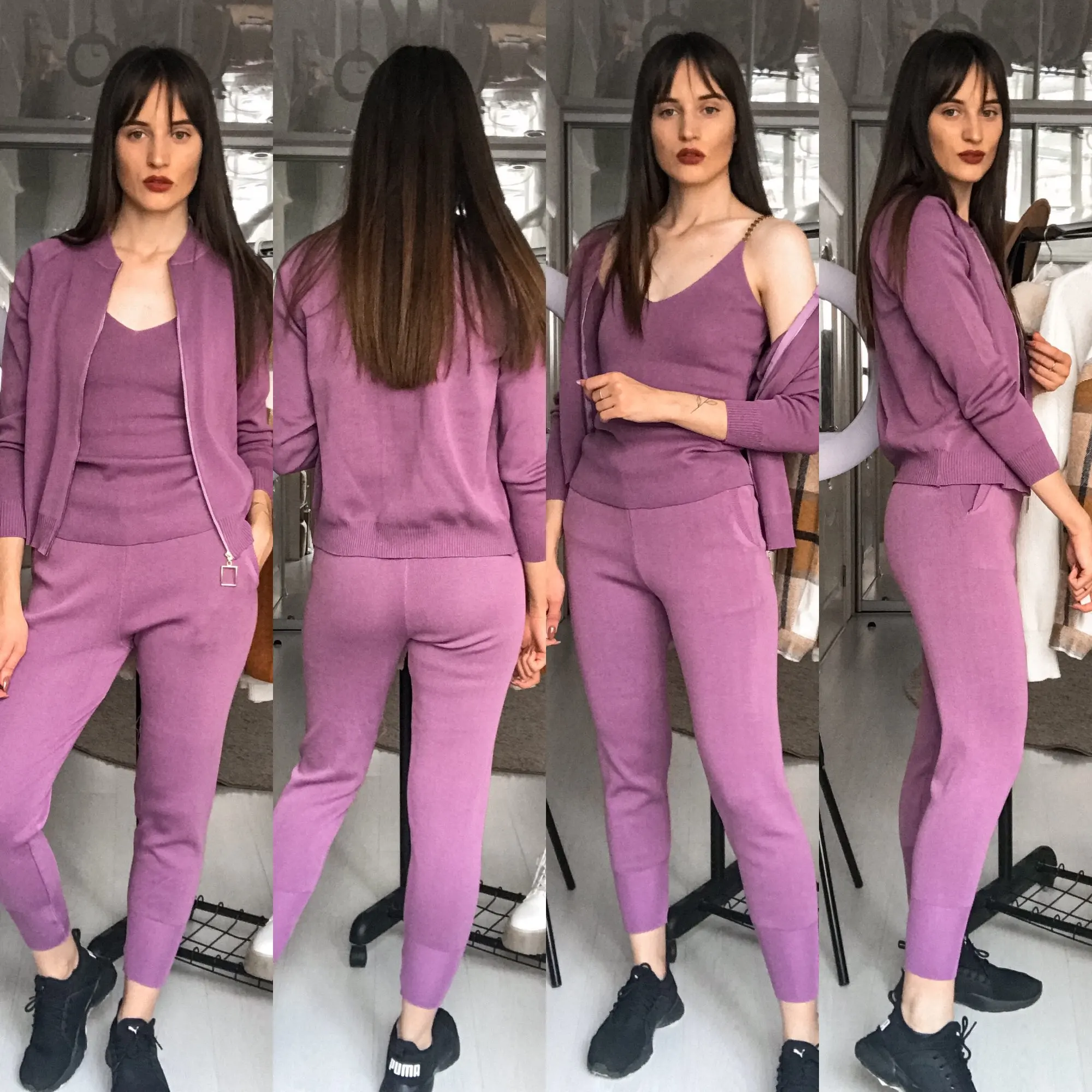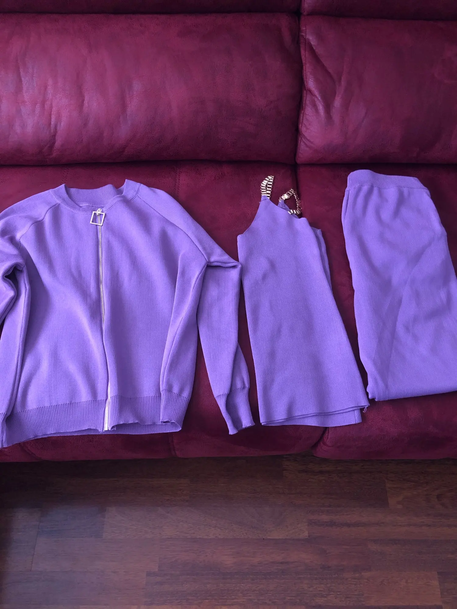 Костюм тройка. Единый размер хорошо сел на мои параметры: объём груди 86см, объём талии 65см, объём бёдер 94см. Брюки коротковаты. Рекомендовала бы девочкам пониже меня. Мой рост 175см. Хорошая ткань, но достаточно лёгкая. Костюм подойдёт скорее для весны и лета. Цвет красивый и насыщенный. Было несколько лишних ниточек. На брючках есть карманы. На талии резинка. Шнурочка нет, не регулируется по объёму. Замочек на кофте хорошо работает. Для своей стоимости костюм отличный. При распаковке постороннего запаха не было. Доставка 2 недели до Ставрополя. Больше моих обзоров и ссылки на товары можете найти: В ИНСТАГРАМ, ТЕЛЕГРАМ и ТИКТОК по нику SONKASERGEEVNA