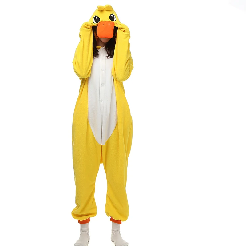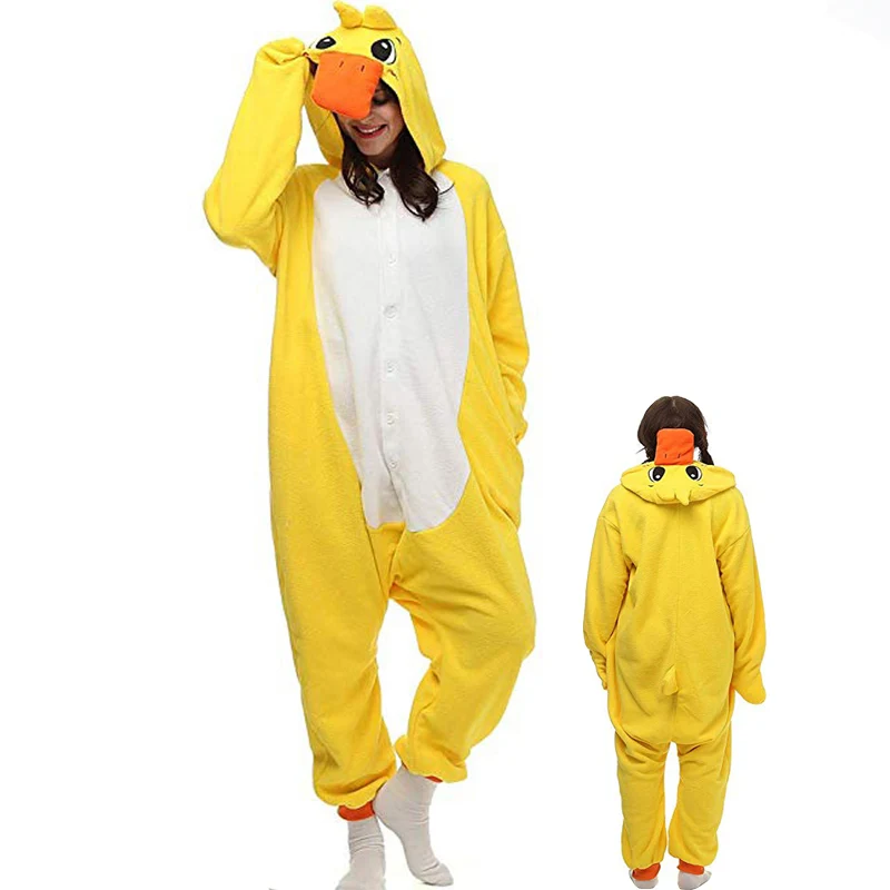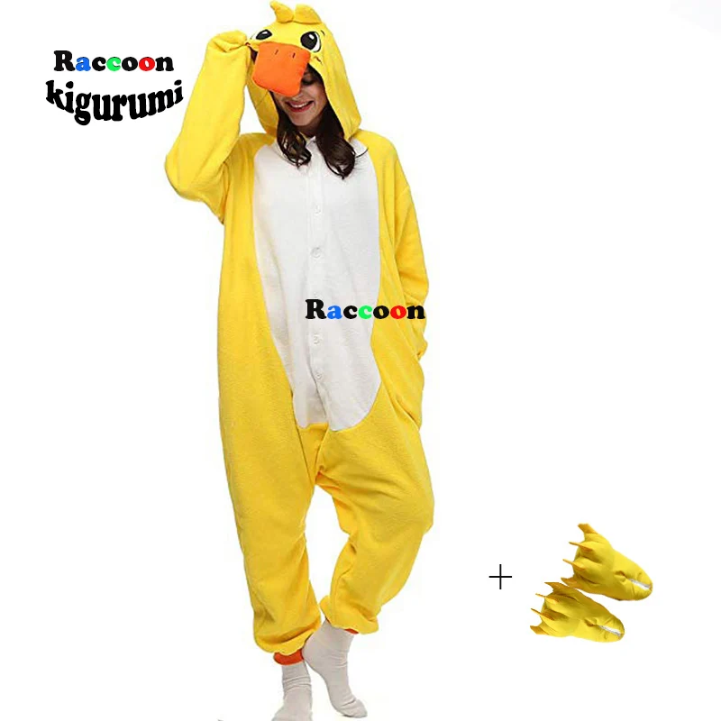 Пижама-комбинезон с рисунком аниме желтый утенок флисовый комбинезон забавная одежда для сна женская пижама для девочек Нарядный костюм Кигуруми для взрослых с енота
