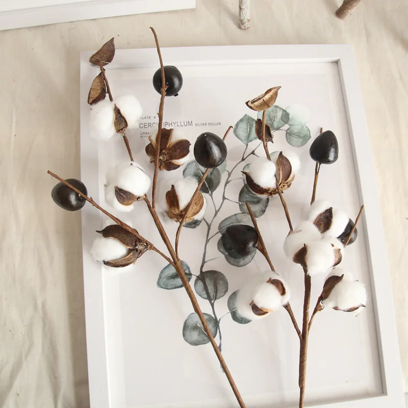 Сушеные хлопковые цветы, искусственные растения, Цветочная ветка дл...