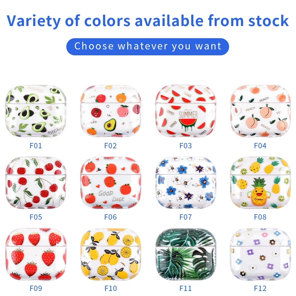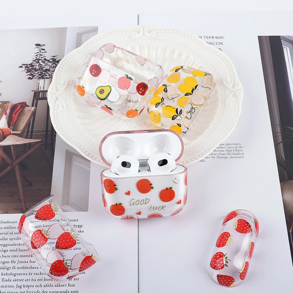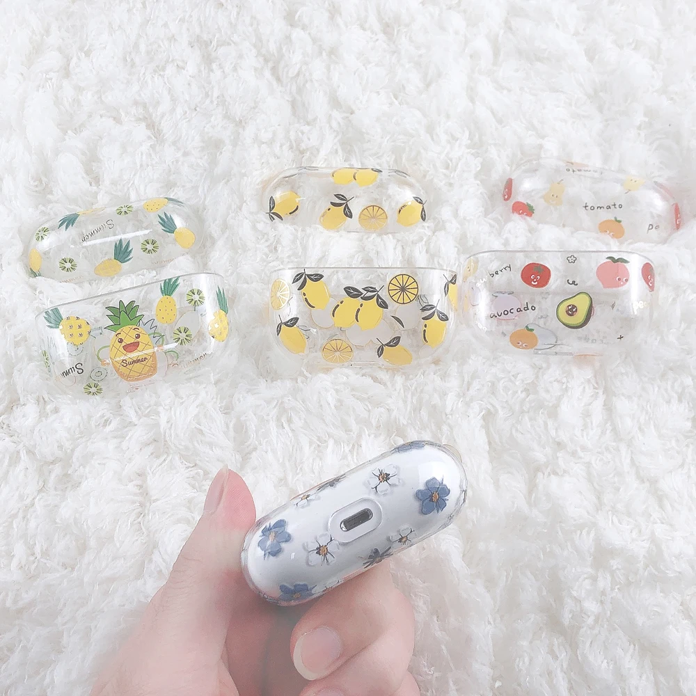 Чехол из поликарбоната для Airpods Pro, прозрачный чехол с фруктовым узором для AirPods 3, милый прозрачный противоударный чехол для AirPods 2 1, чехол для наушников