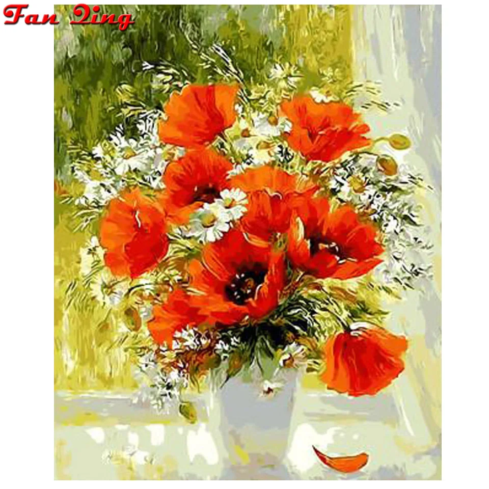 Алмазная вышивка "сделай сам", круглыеквадратные стразы, цветы, выш...