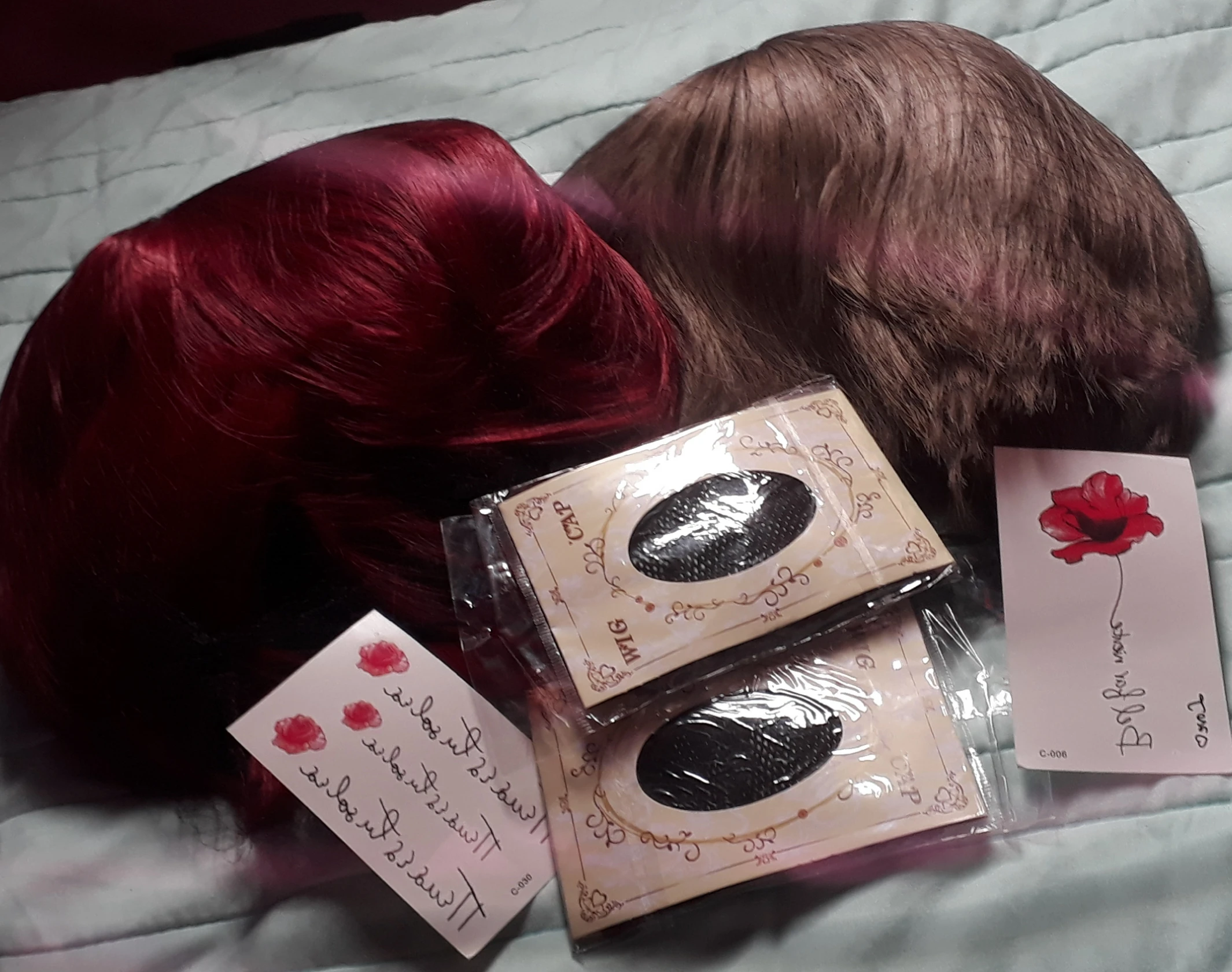 Мне очень понравился парик, цвет очень красивый, он не очень блестит, что хорошо. Единственная проблема, которая у меня есть, я думаю, это то, как это приклеено к волосам, на первый взгляд это не видно, но когда вы пытаетесь коснуться волос, вы можете заметить определенные неровности. Но это все равно мило!, мне очень понравился размер, я думаю, что вам не нужно его стилизовать, с хорошей прической все готово! Он пришел с сеткой для волос и некоторыми татуировками, он пришел быстрее, чем я думал.