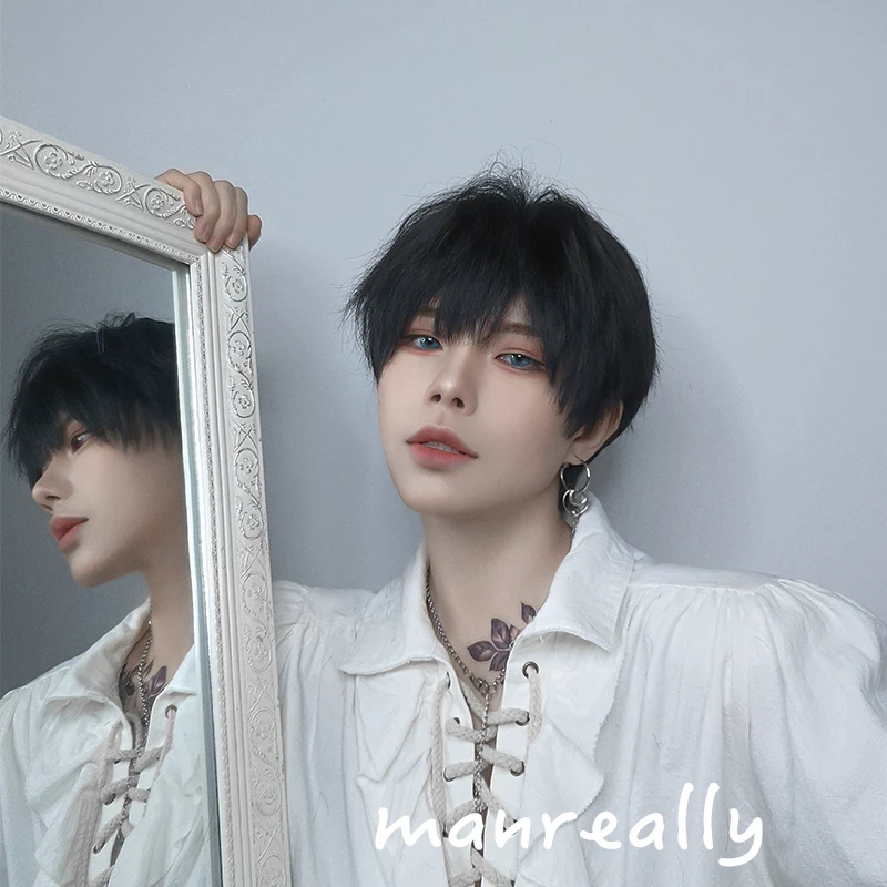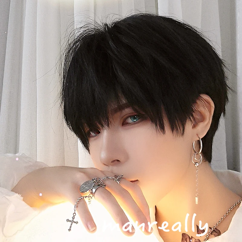Ailiade черные мужские парики 12 дюймов, короткие прямые с челкой, синтетический парик для женщин, мужчин, мальчиков, косплей, аниме, вечеринка, повседневный костюм, парик