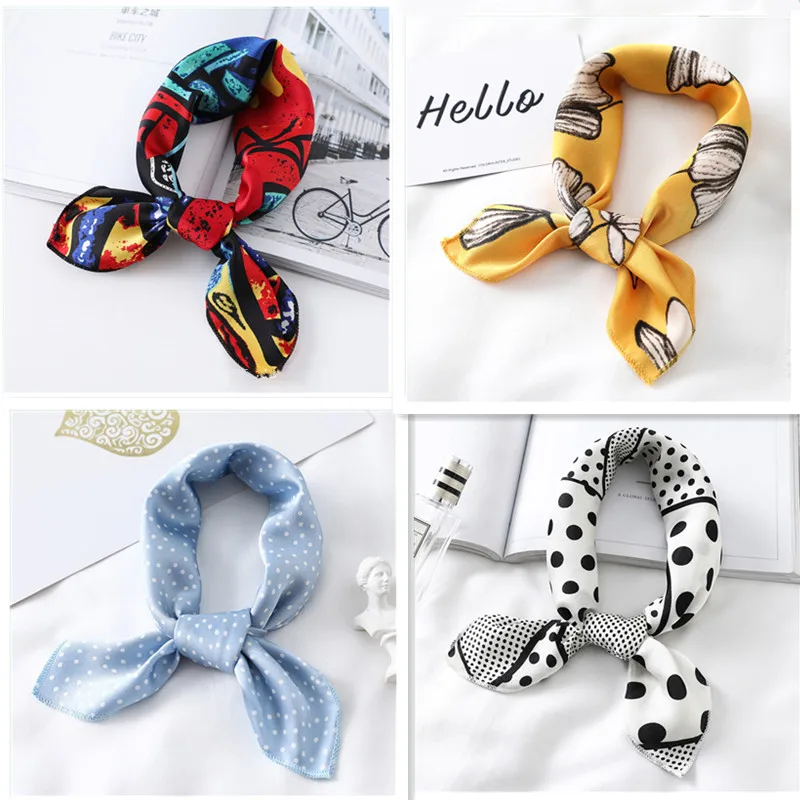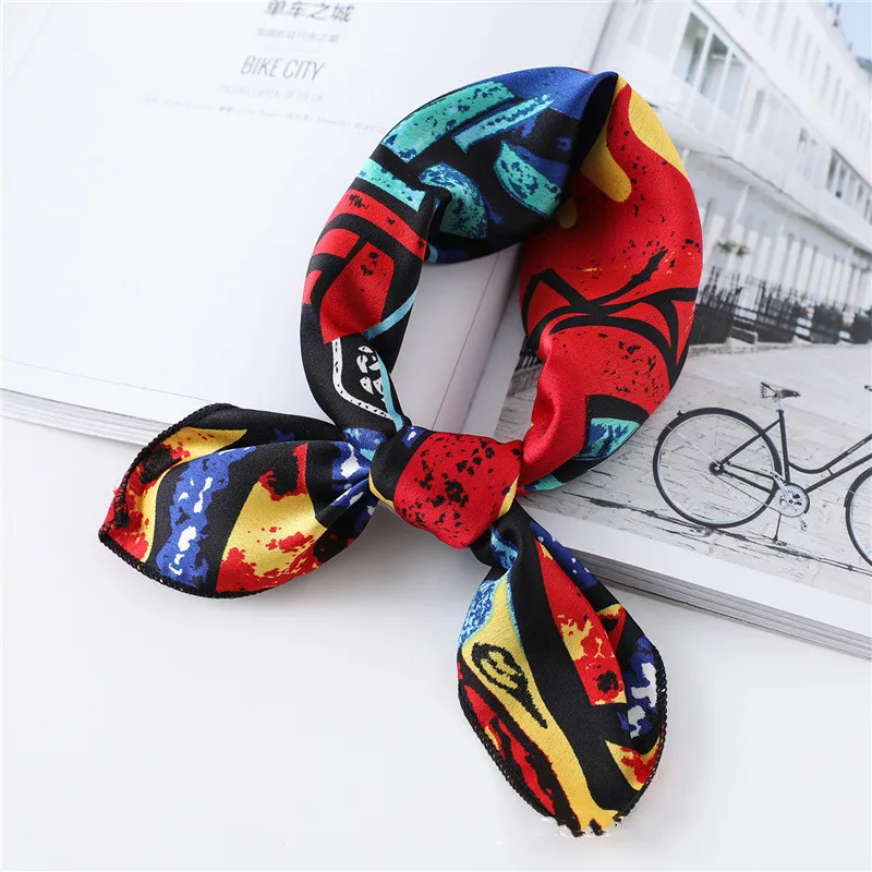 Женская шаль Бандана 1 шт., квадратный шелковый шарф, женские модные маленькие шейные шарфы с принтом, Офисная искусственная ткань, платок для рук