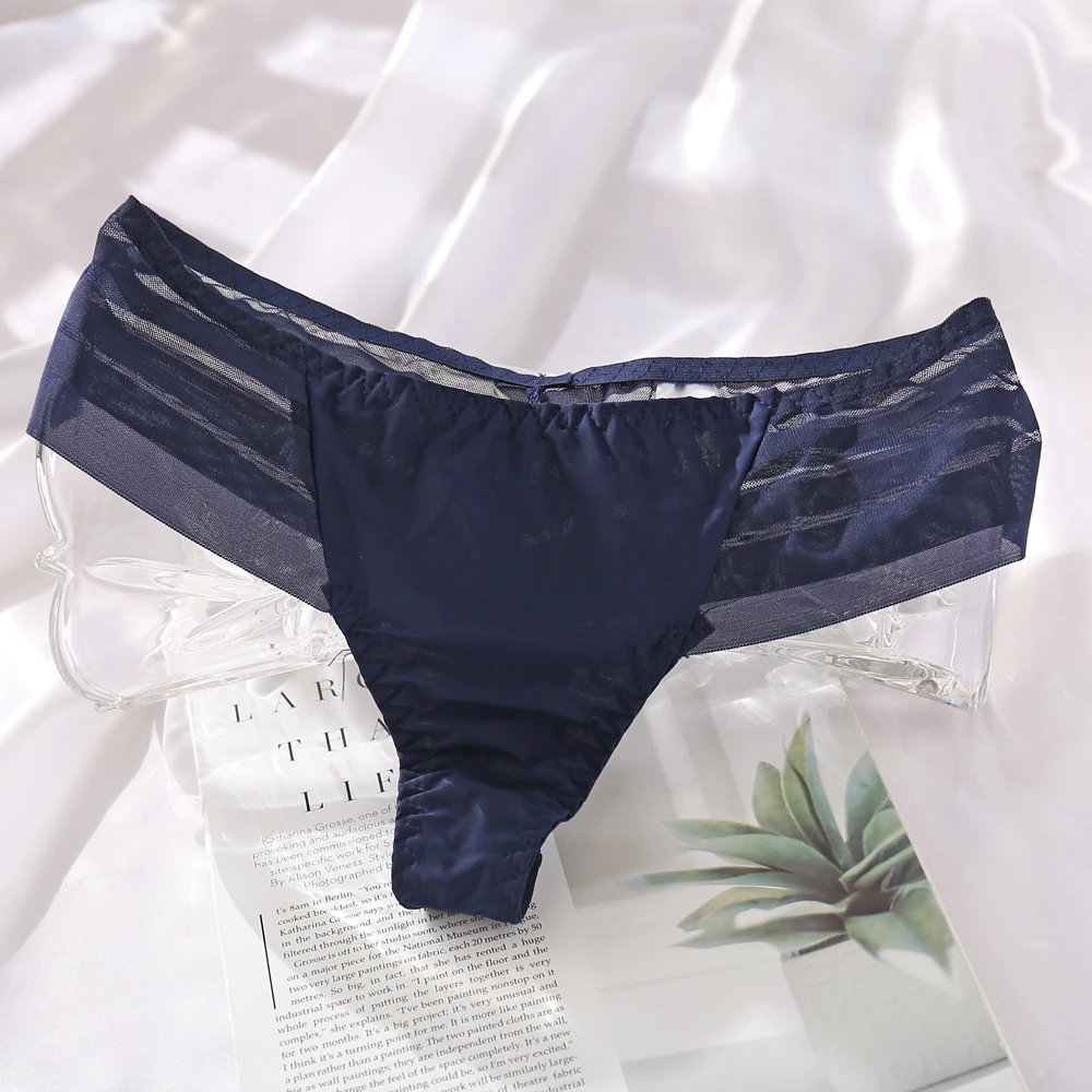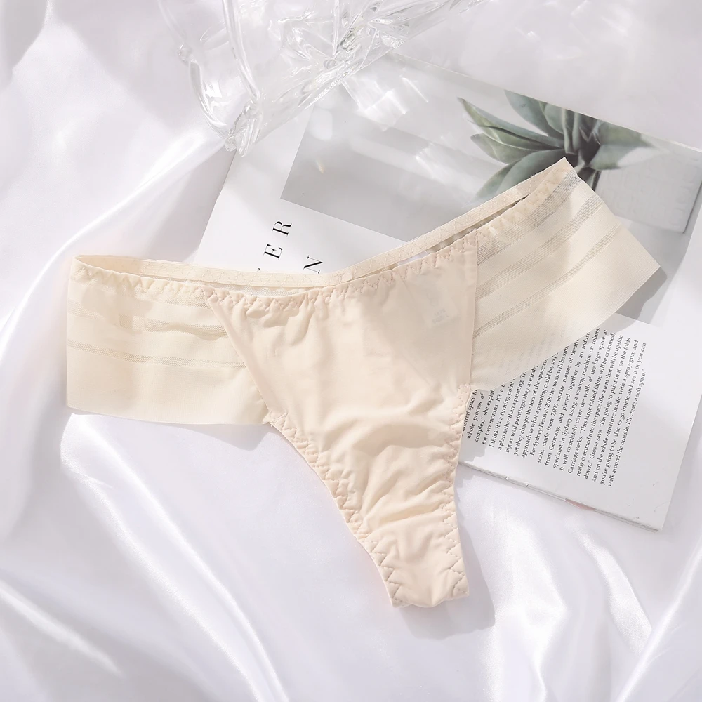 Сексуальные Бесшовные трусики-стринги для женщин, нижнее белье, лоскутные сетчатые стринги с низкой талией, интимное однотонное нижнее белье для женщин