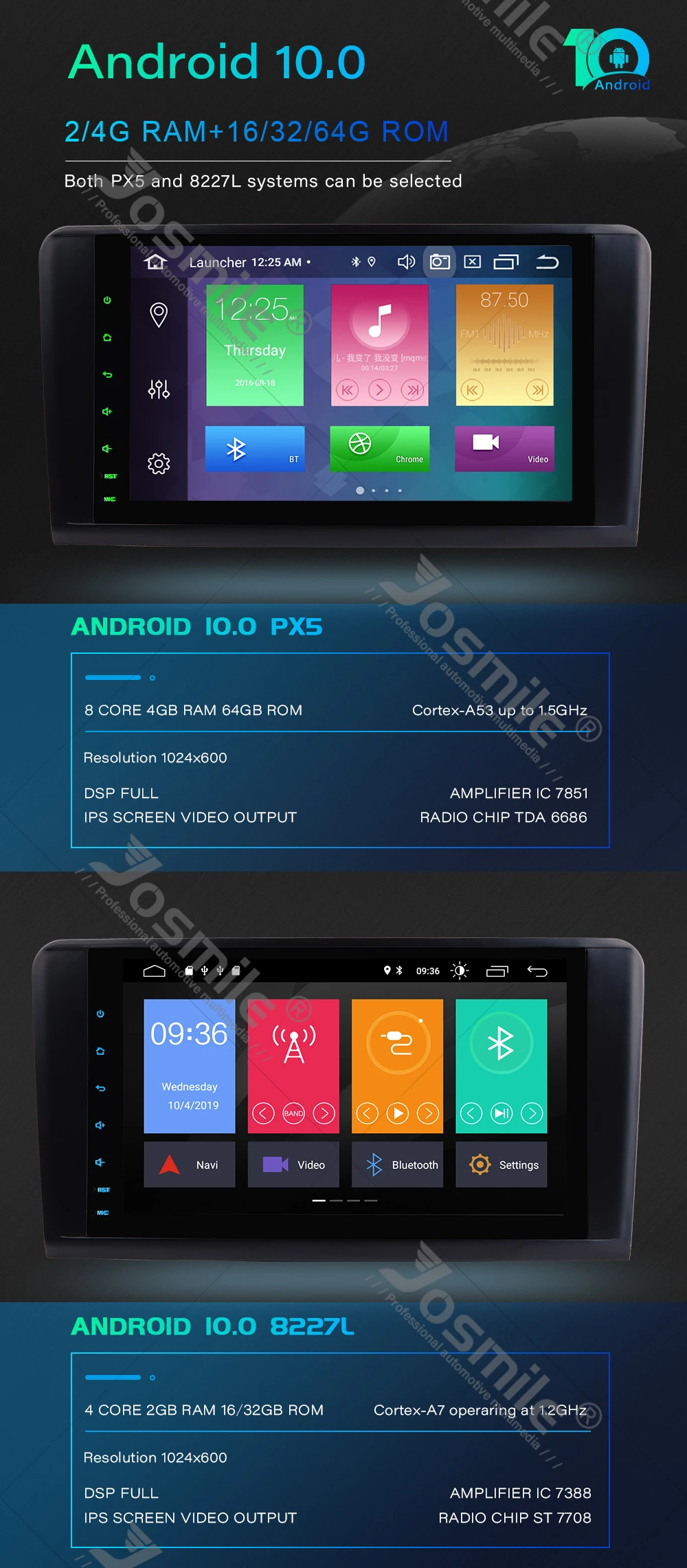 Автомобильный DVD-плеер PX5 DSP 2din Android 11 для Audi A3 8P 2003...