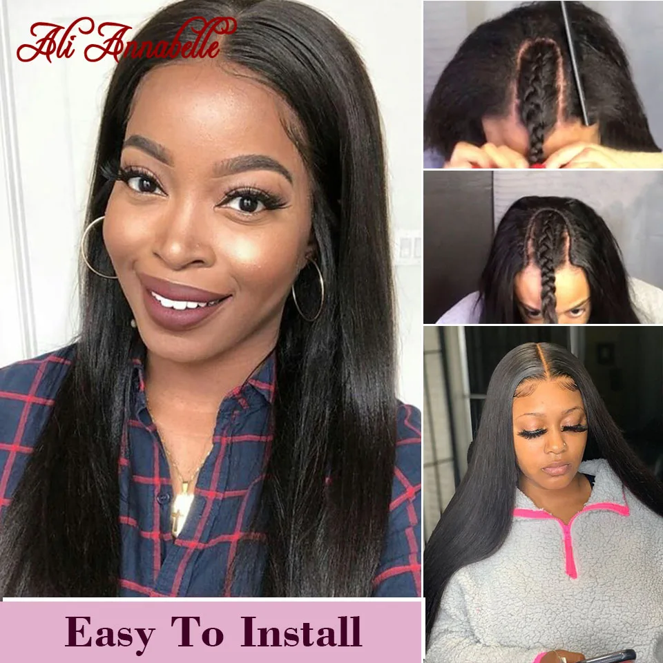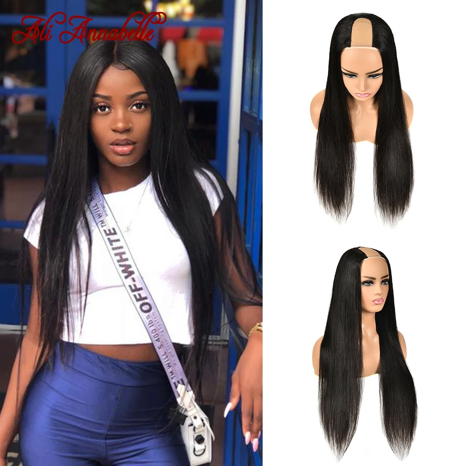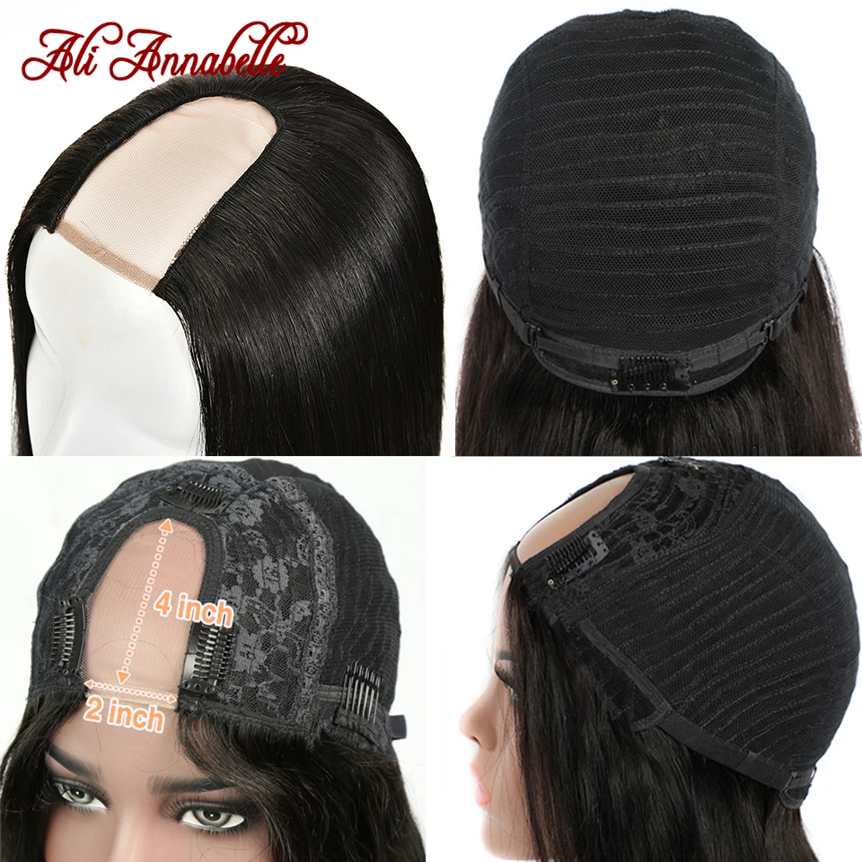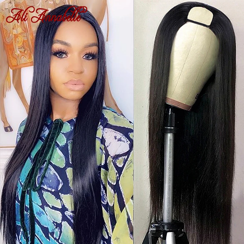 Ali Annabelle U часть парик человеческие волосы без клея человеческие волосы парики 10A бразильские виргинские волосы прямые парики фронта шнурка U Часть прямые
