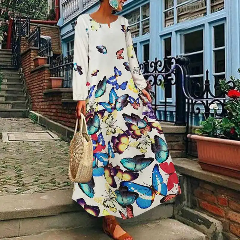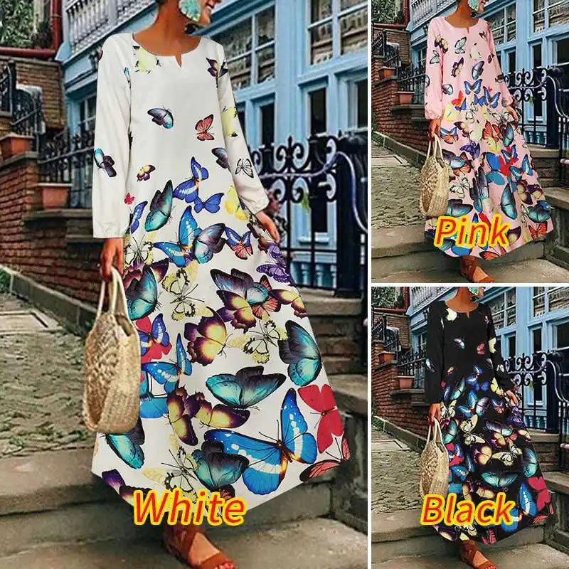 Посылка входит: 1 платьеМатериал: 100% полиэстерЦвета: черный, белый, розовыйРазмер: S,M,L,XL,2XL ,,,Длина рукава: полный рукавВырез горловины: круглый вырезРисунок: принт бабочкиДлина: до середины икрыТолщина: тонкаяСтиль: Досуг, ретро, Европа, НациональныйСезон: весна, лето, осеньПовод: семья вечерние, пляж, свадьба, праздник, работаВнимание:1. Реальный объект может иметь небольшие различия в цвете по сравнению с изображениями, так как разные компьютеры отображают. Будьте осторожны при обращении, спасибо.2. Возможна погрешность в 1-3 см из-за ручного измерения. Приносим извинения за неудобства.3. Пожалуйста, преимущественно на реальном товаре, изображения моделей приведены только для справки.4. Внимание! Перед размещением заказа внимательно ознакомьтесь с таблицей размеров.