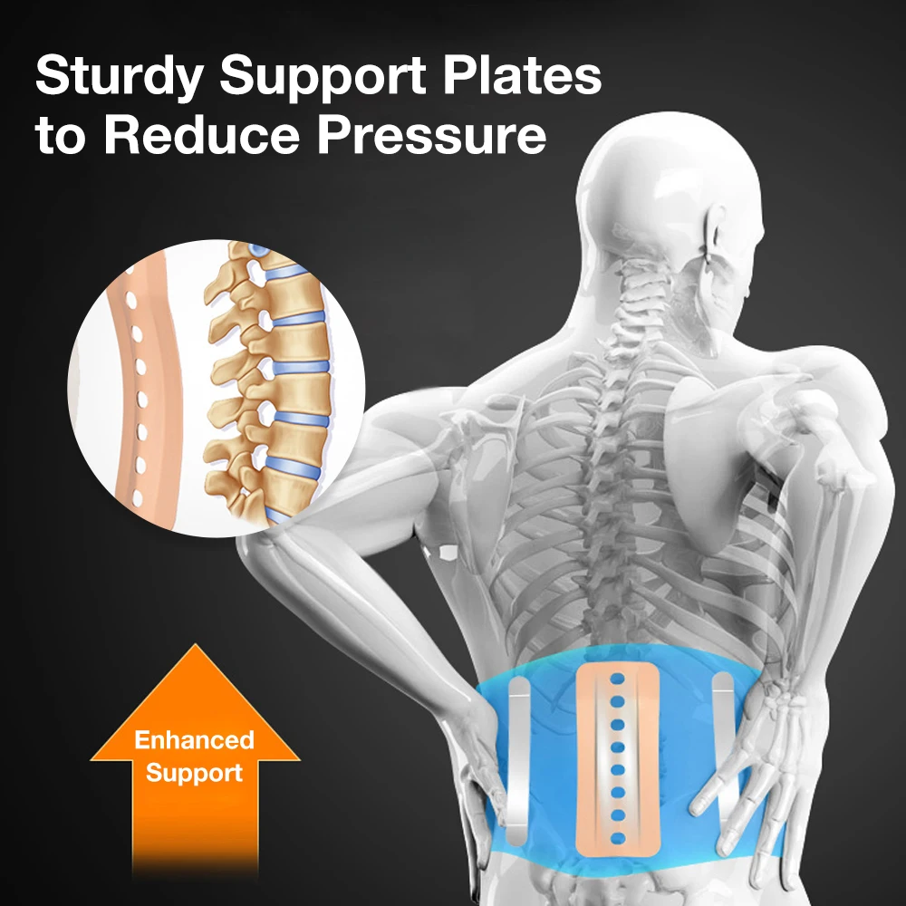 2. Вспомогательные опорные пластины ABS и металлические опорные пластины с усиленными жесткими пружинами обеспечивают дополнительную стабильность для двойной защиты талии, эффективно помогая снять давление на талии и боль, также можно избежать атрофии мышц.