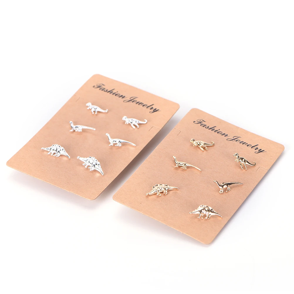 Серьги-гвоздики в форме животного в стиле панк и динозавра Для Пирсинга Ушей, винтажные женские серьги-гвоздики, 6 шт. = 3 пары