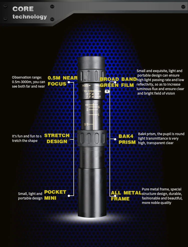 Монокулярный телескоп 10-300x40, качественный портативный бинокль с...