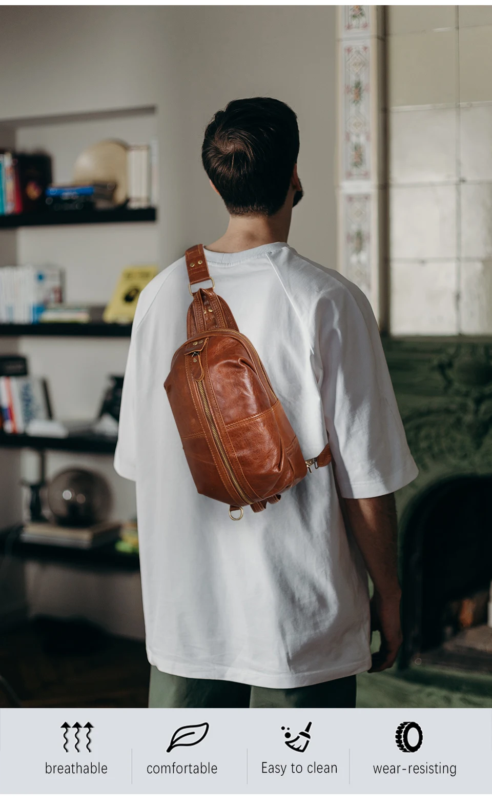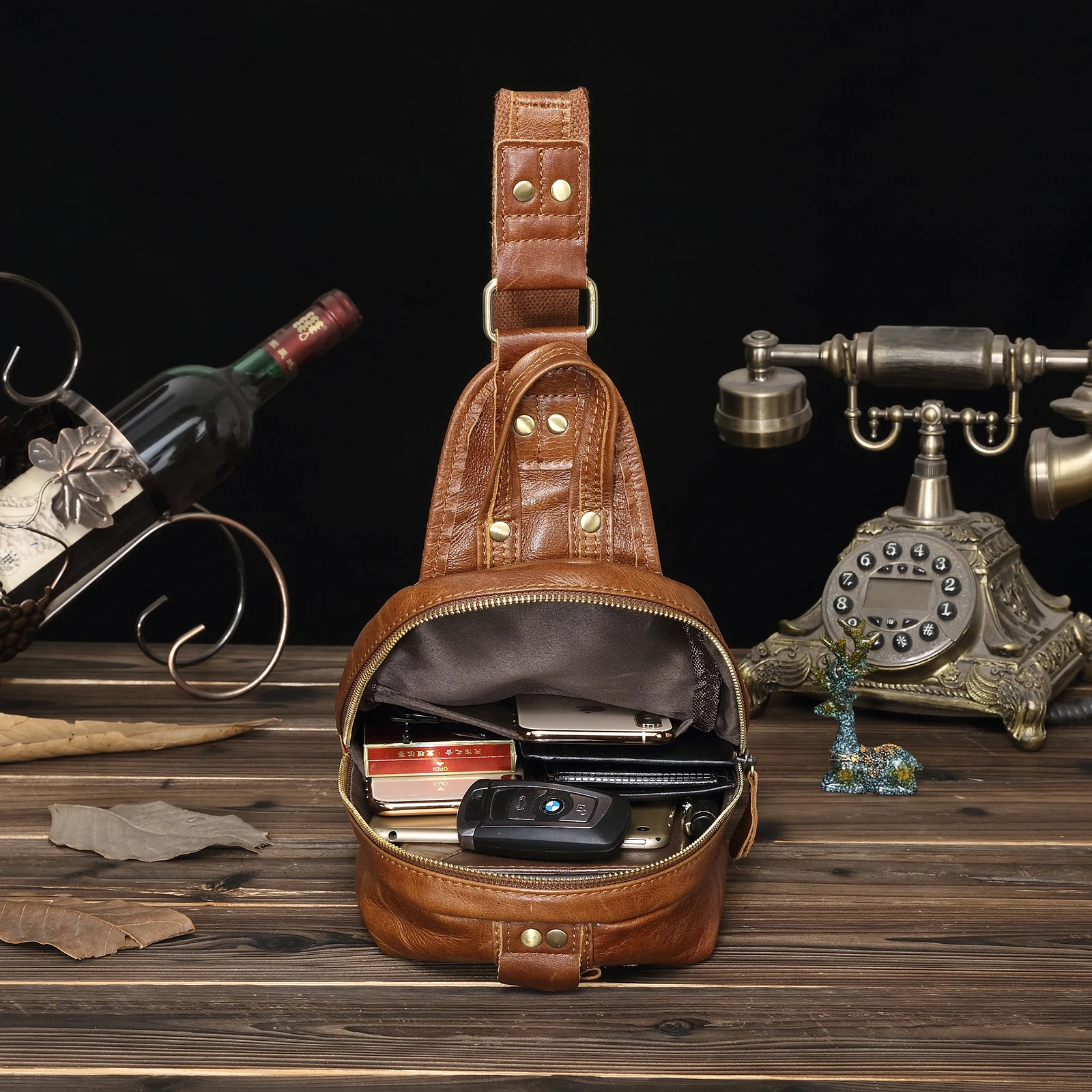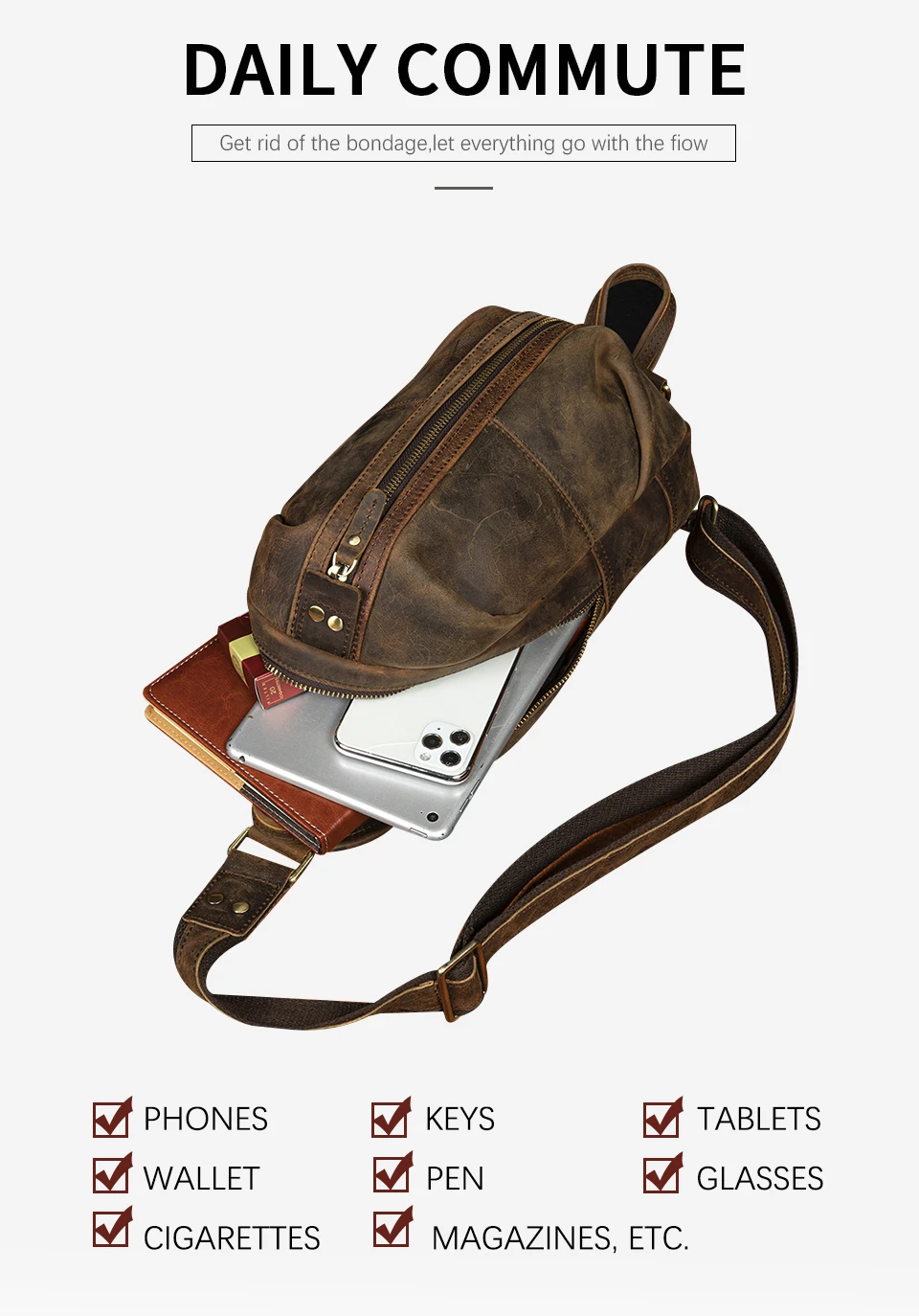 Мужская сумка через плечо, из кожи Крейзи Хорс, повседневная, 1186