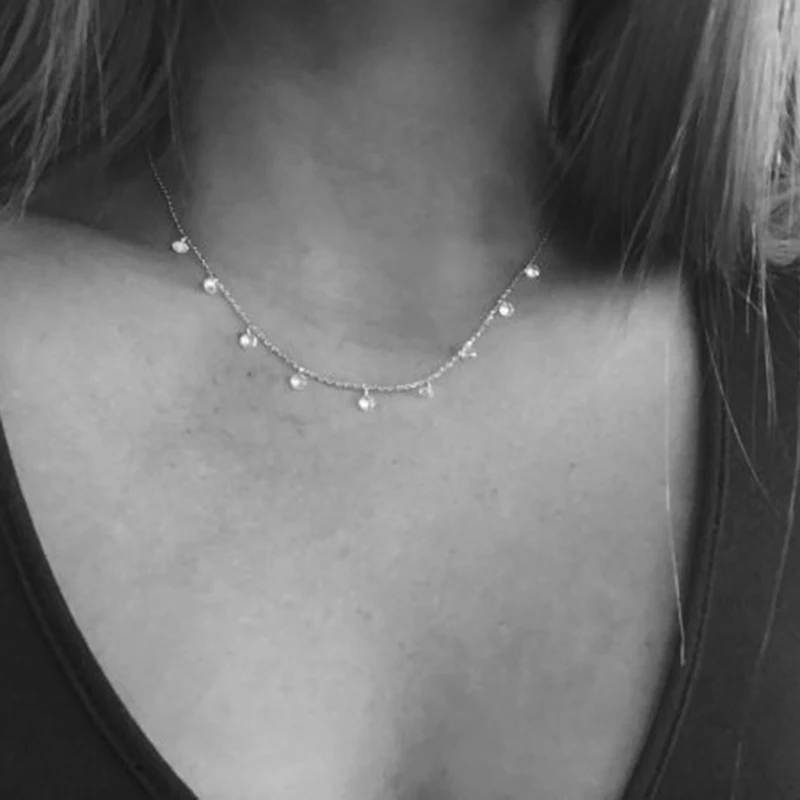 Ожерелье женское прямое из серебра 925 пробы длиной до ключиц