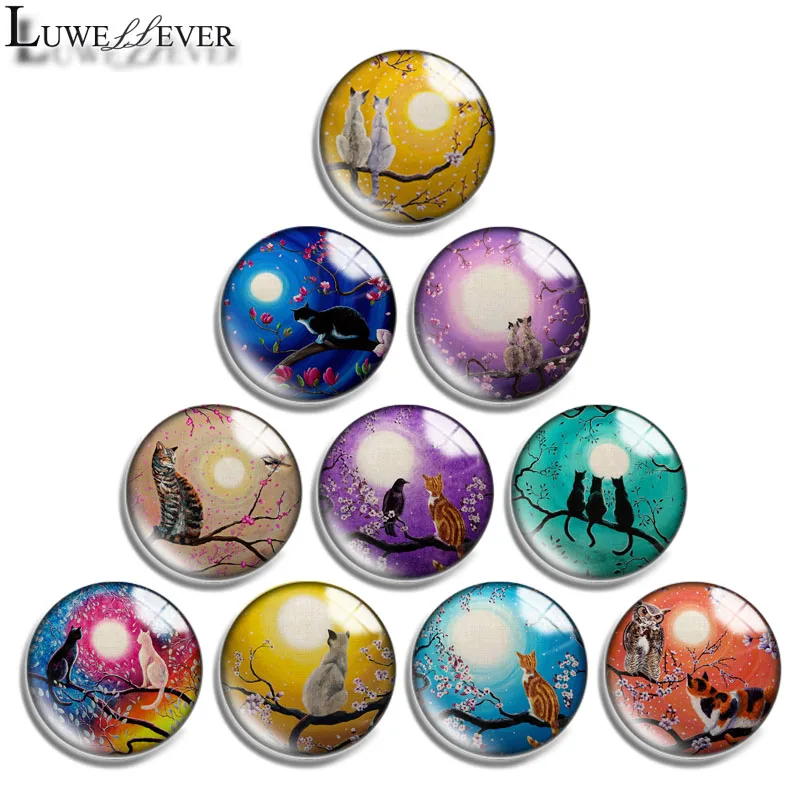10 мм 12 мм 16 мм 20 мм 25 мм 30 мм 631 солнцезащитное дерево, кошка, Микс, Круглые бриллианты, 18 мм, амулетный браслет с кнопкой