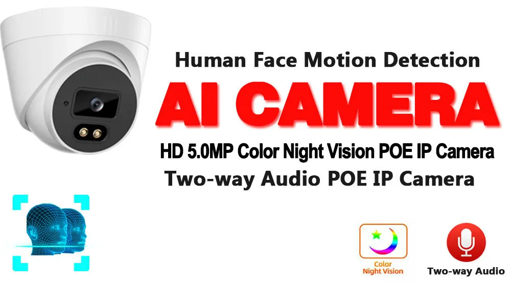 Цветная камера ночного видения H.265 POE IP CCTV видеонаблюдения для помещений HD 5 Мп двухстороннее аудио POE Купольные Камеры видеонаблюдения 2 МП IP Cam